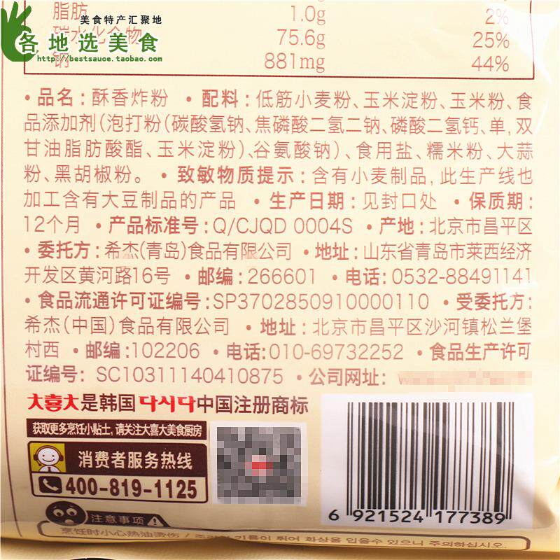 Da xixi da хрустящий жаркий порошок 900 г домашний корейский хрустящий жареный куриный порошок маленький свиная порошка хлеб хлеб хлеб курицы