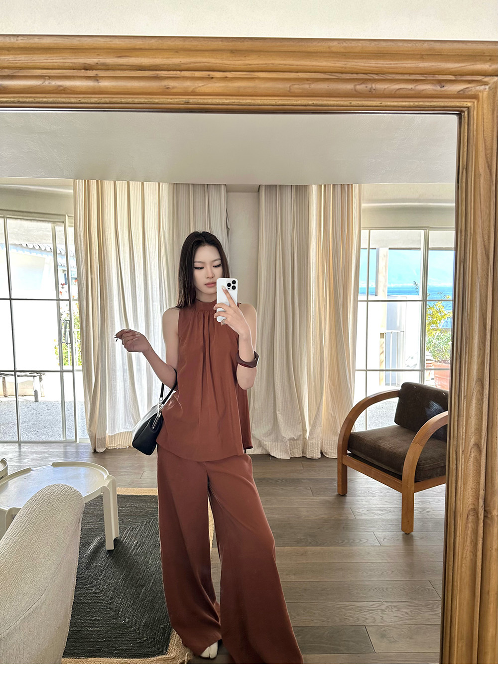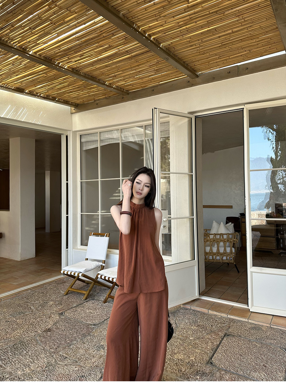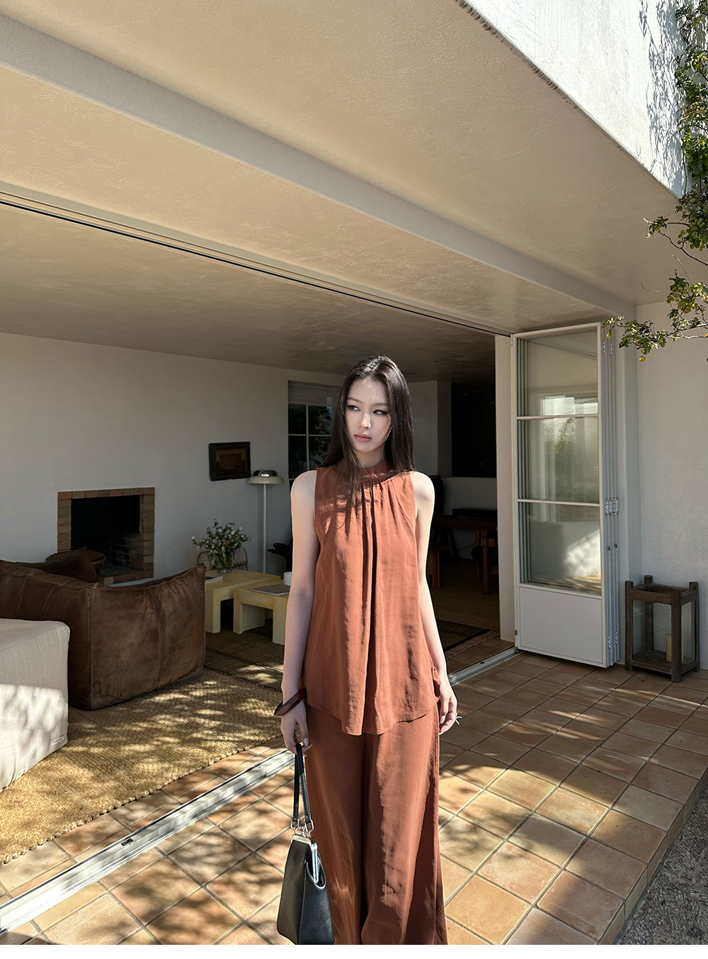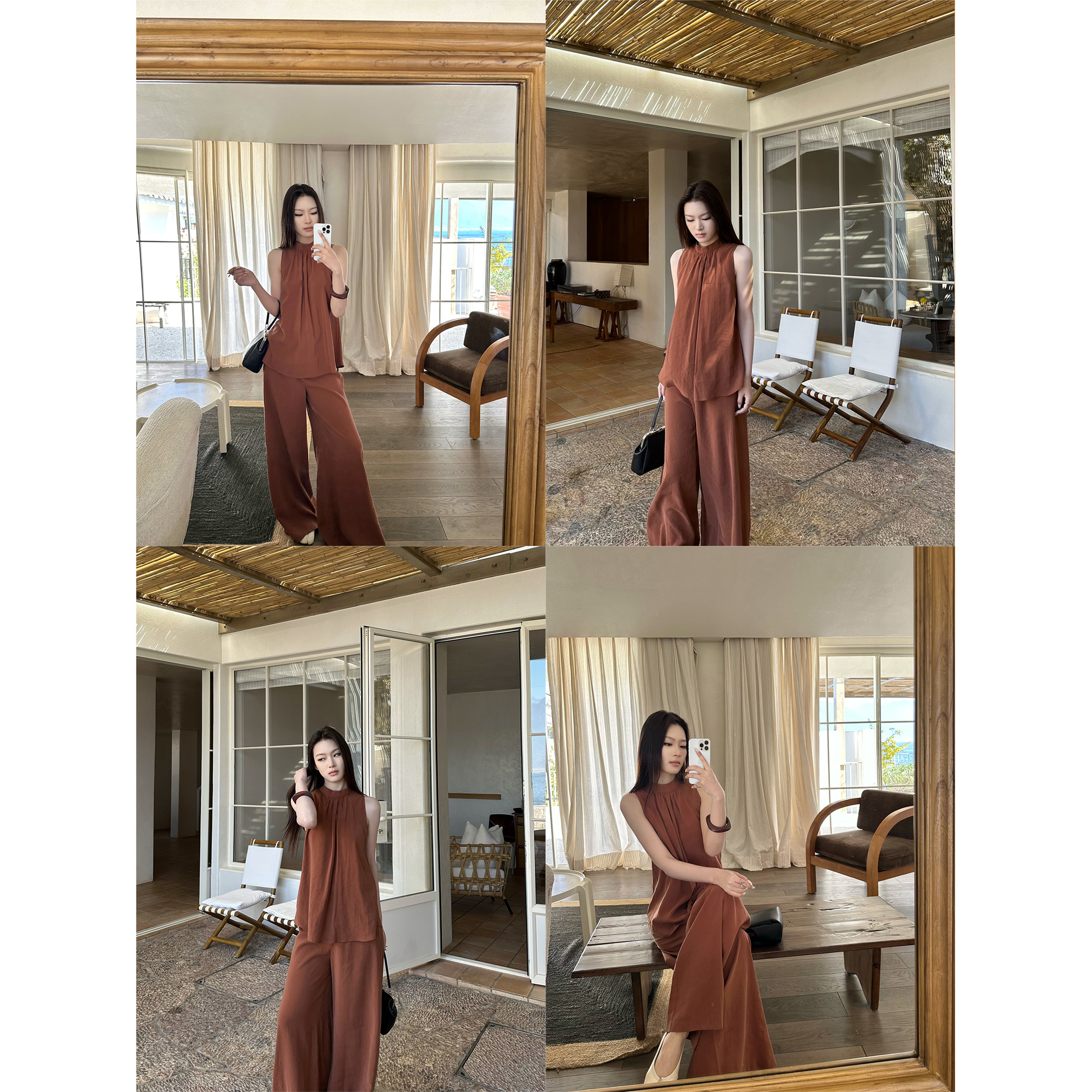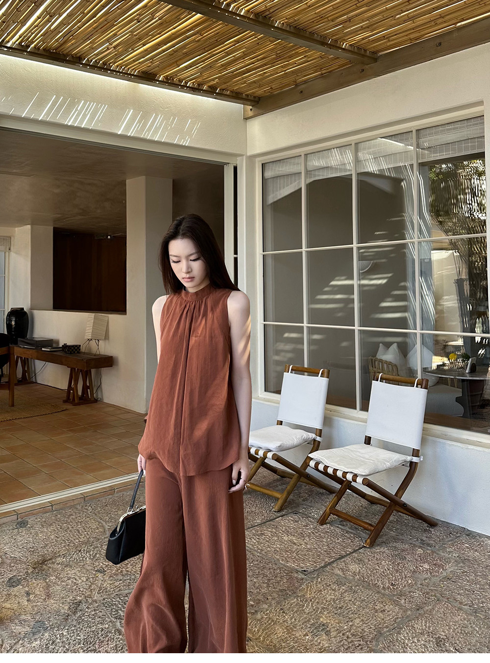 5werkwen Двухцветная медная майка, штаны, полупрозрачная растушевка, свободный прямой крой