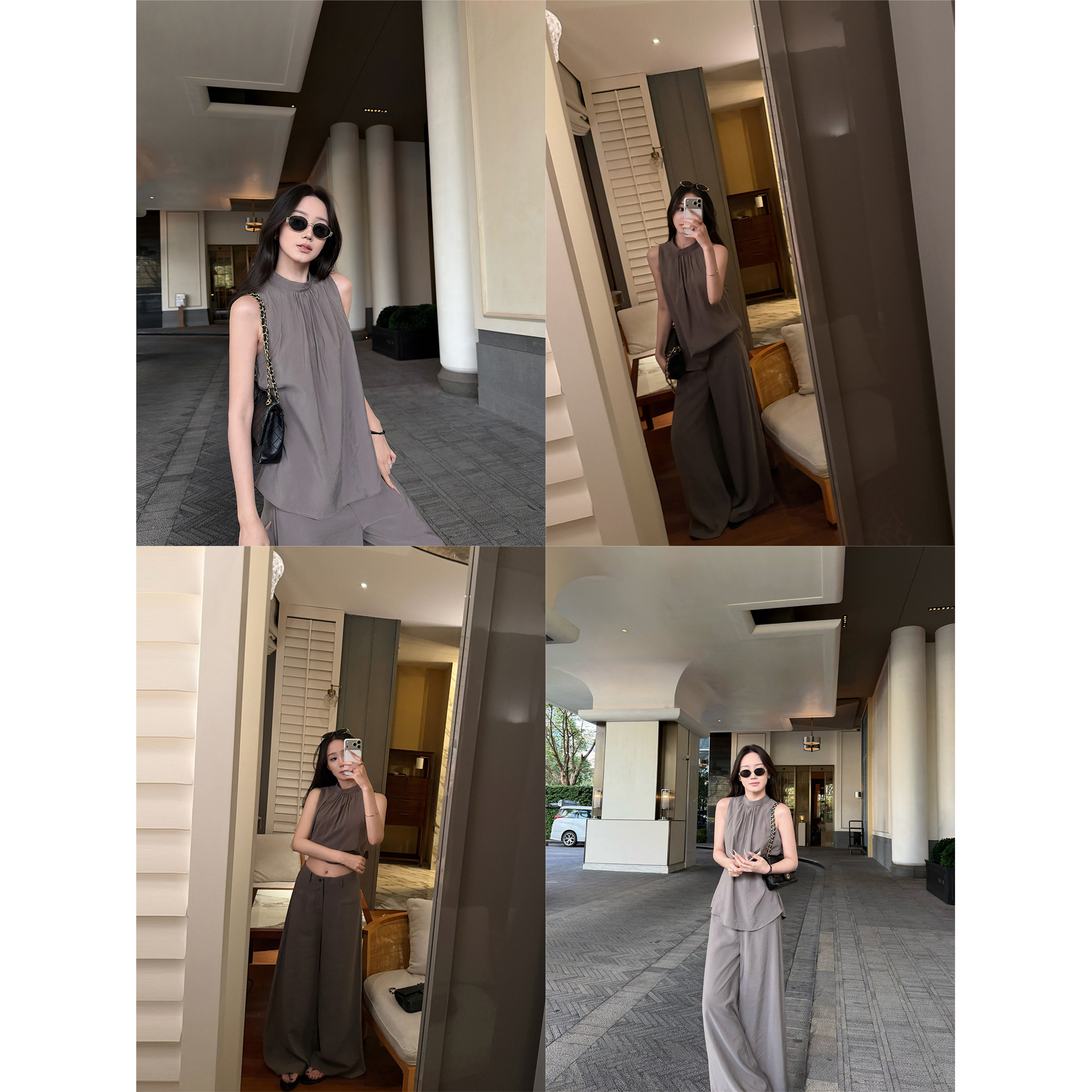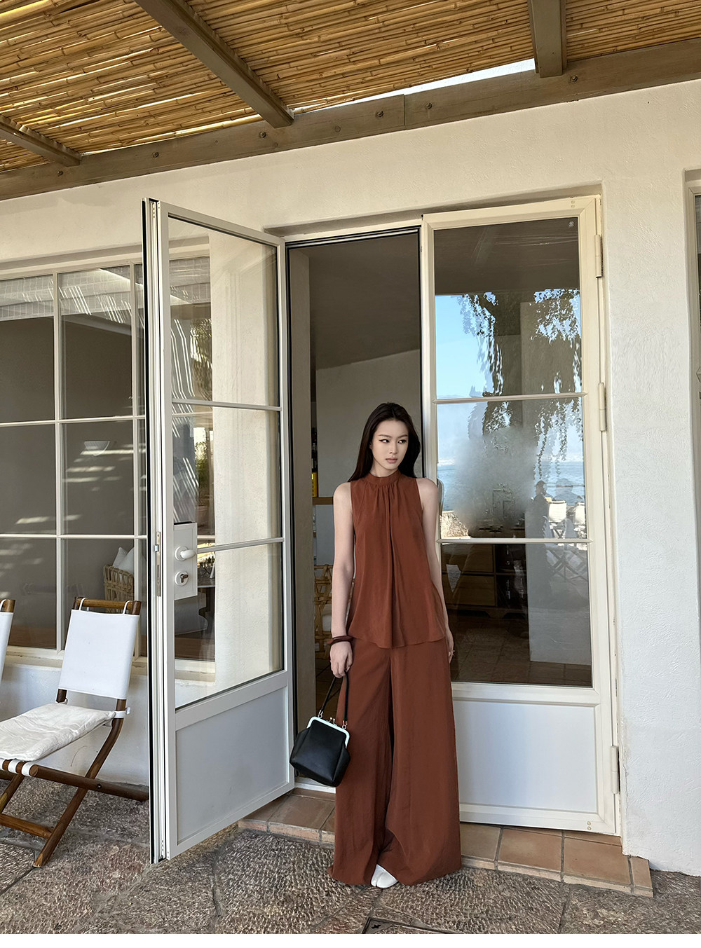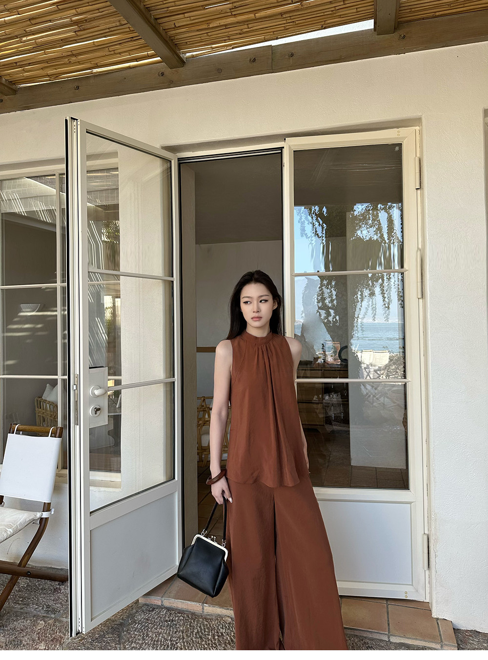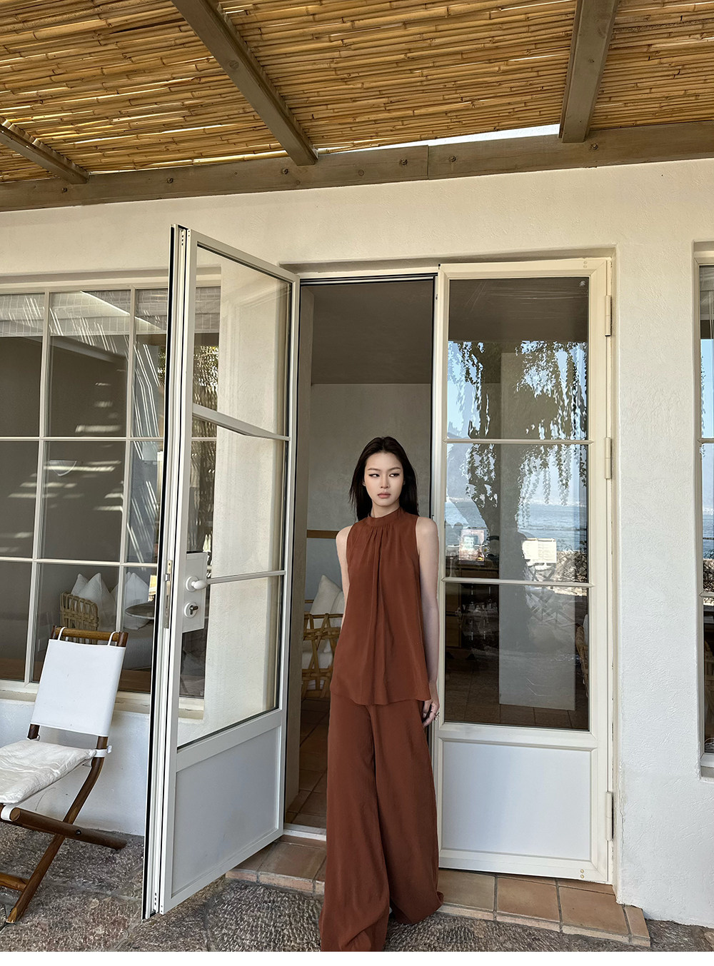 5werkwen Двухцветная медная майка, штаны, полупрозрачная растушевка, свободный прямой крой