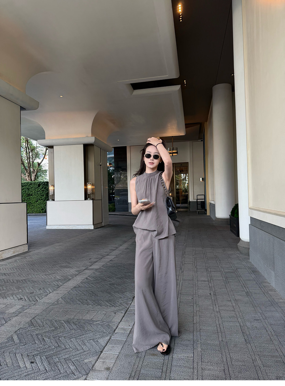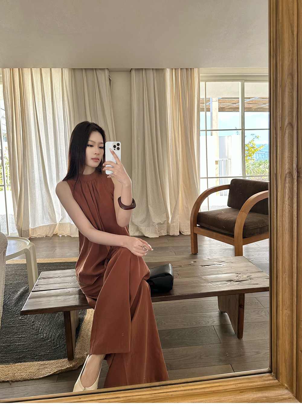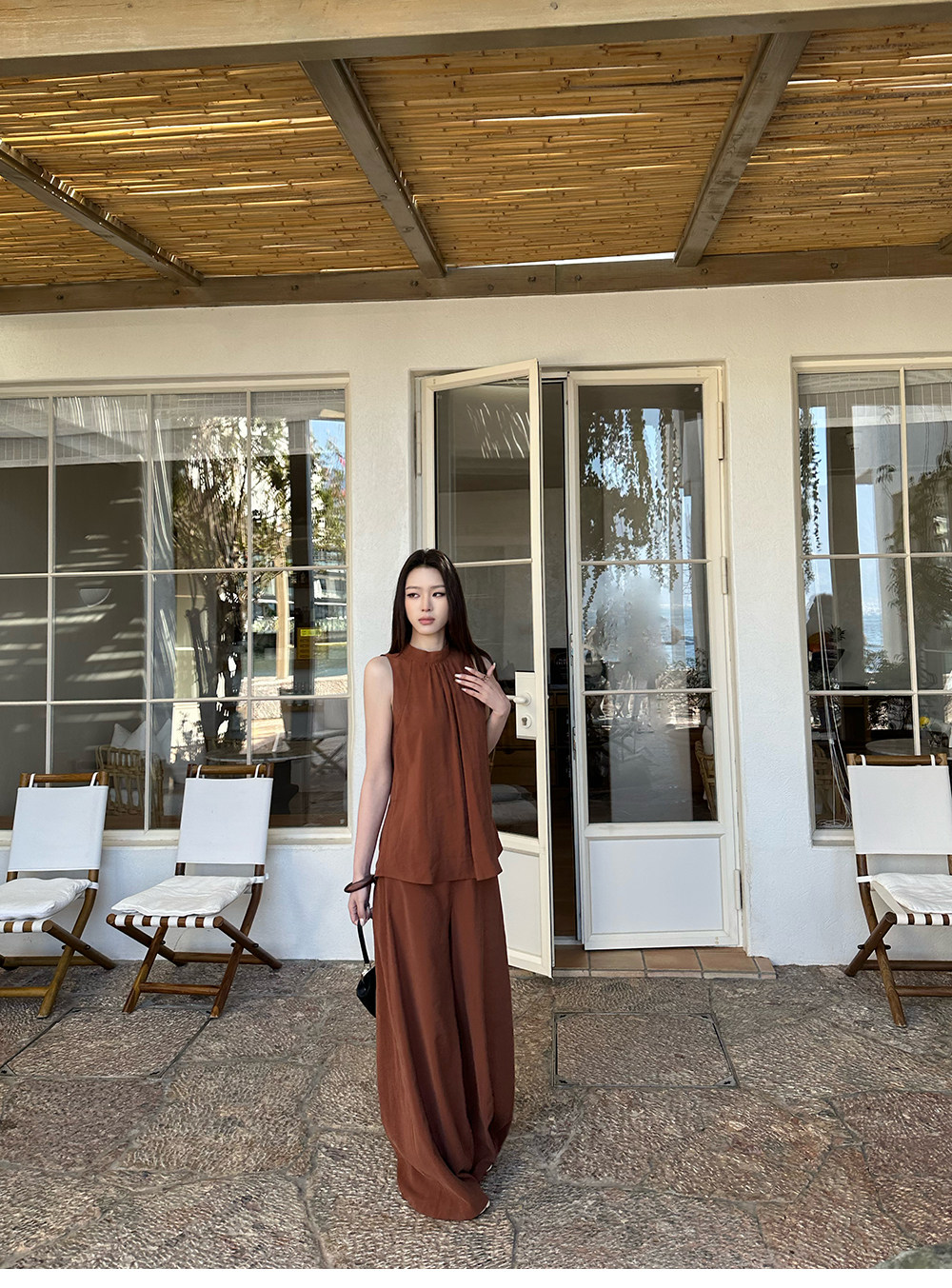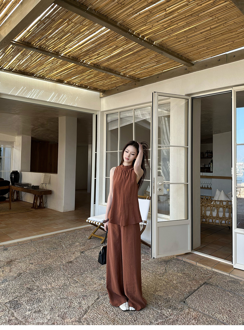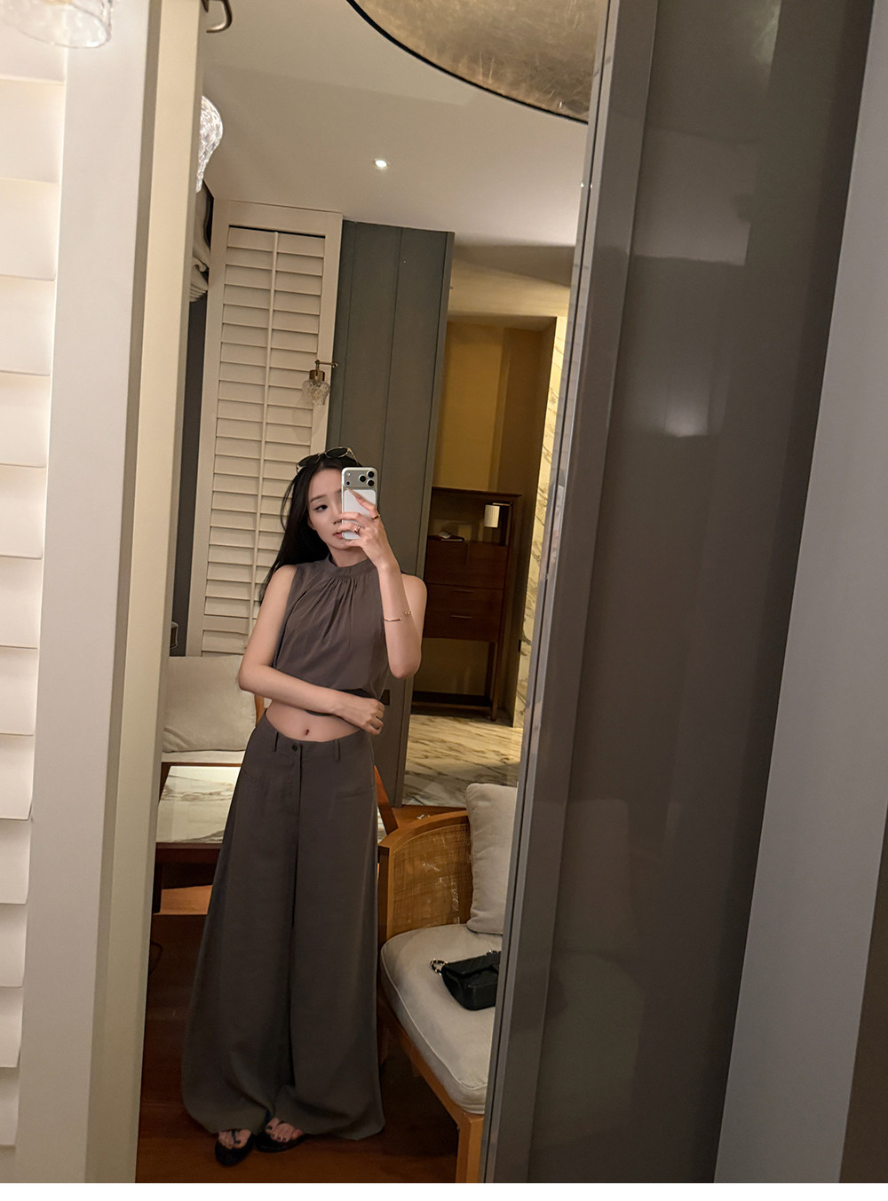 5werkwen Двухцветная медная майка, штаны, полупрозрачная растушевка, свободный прямой крой