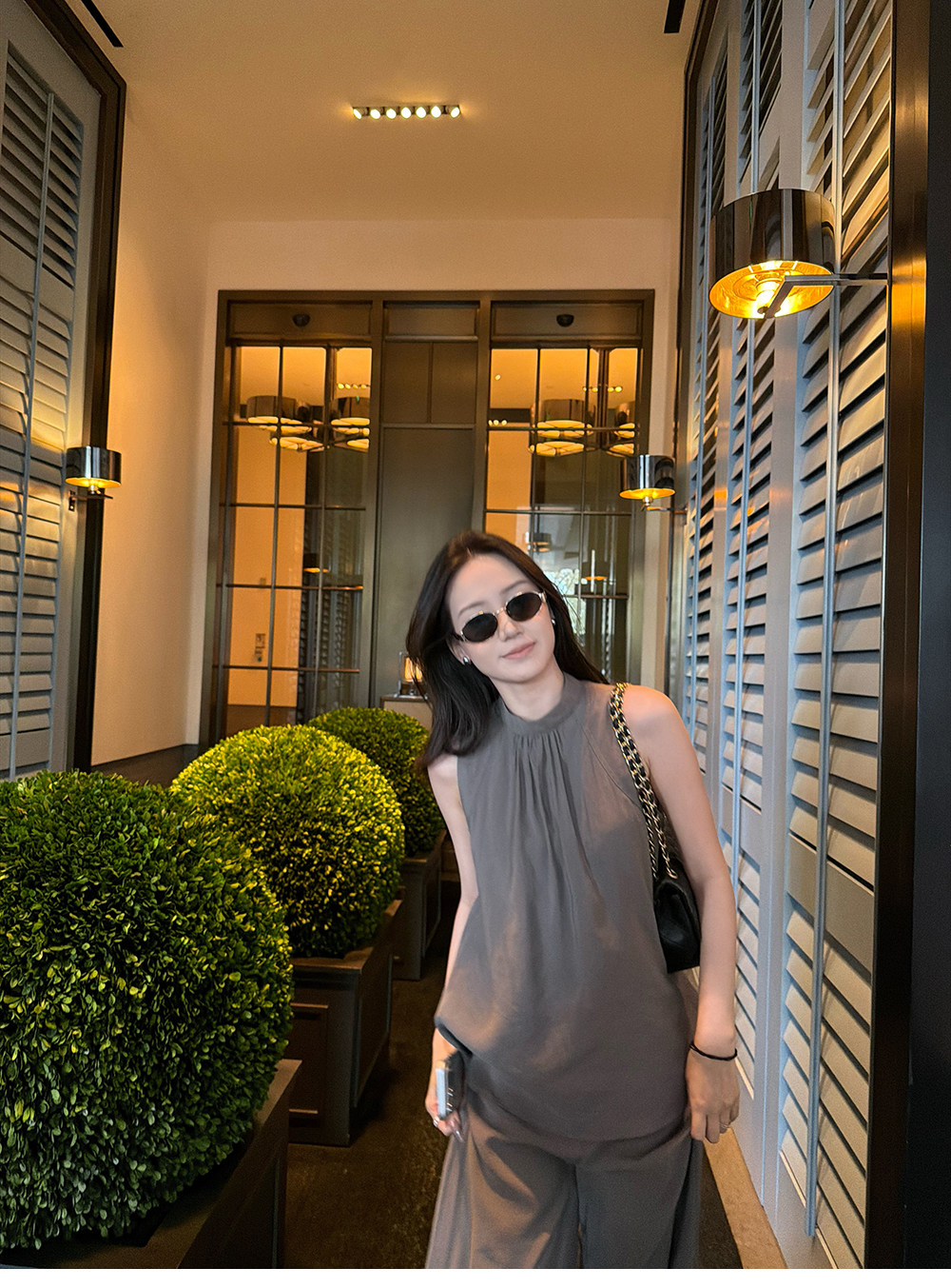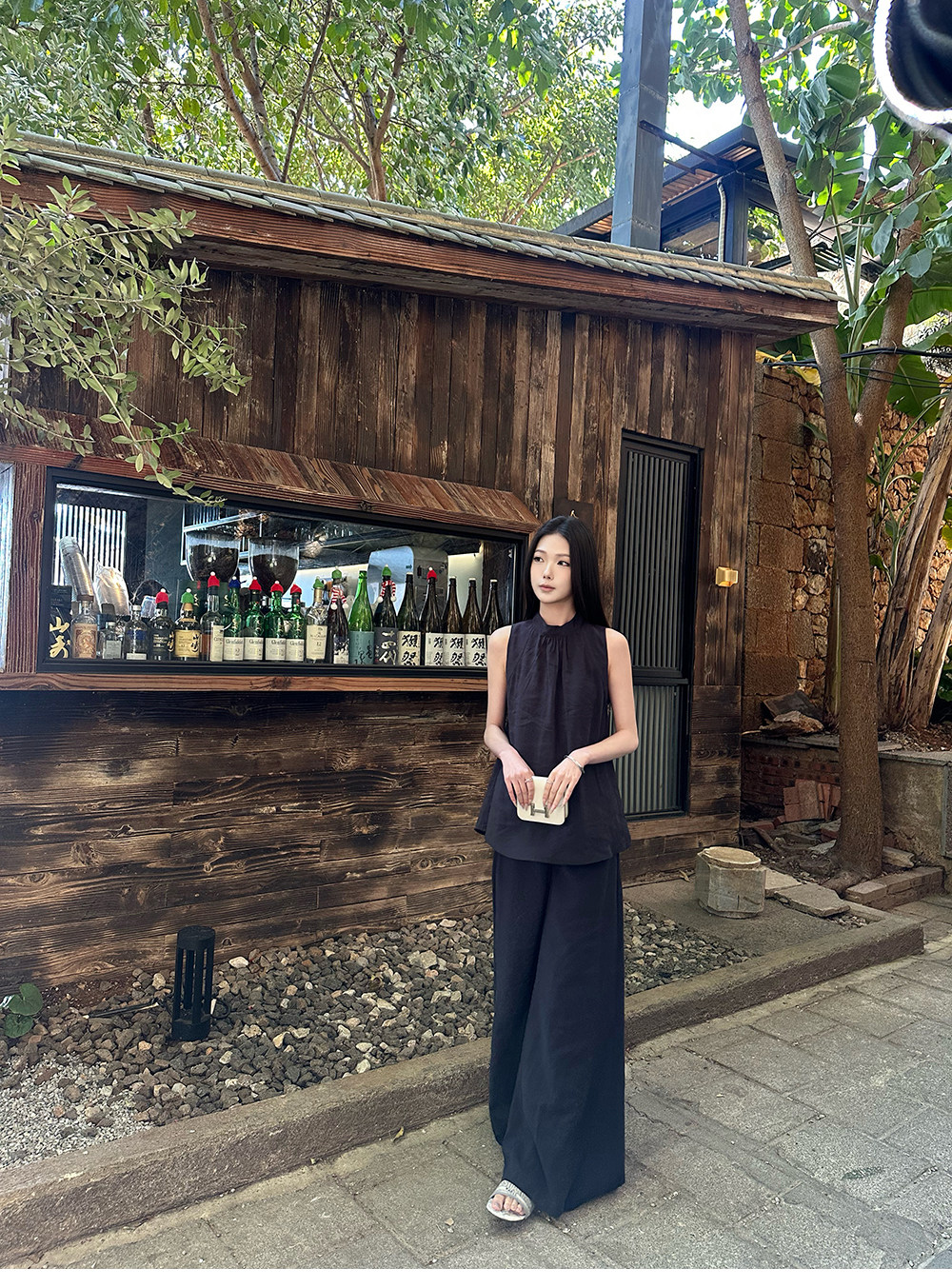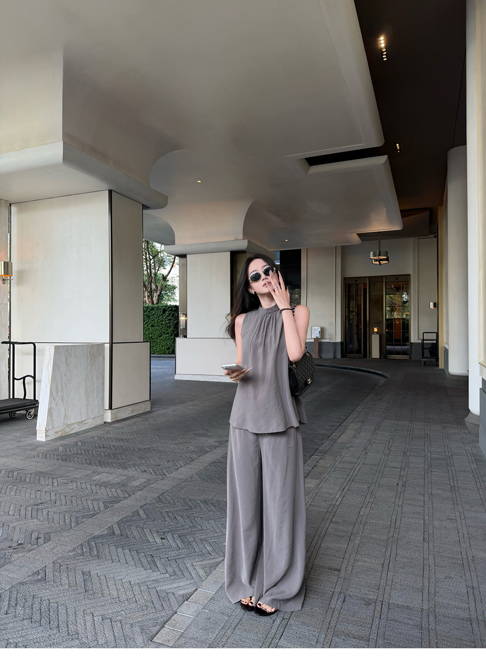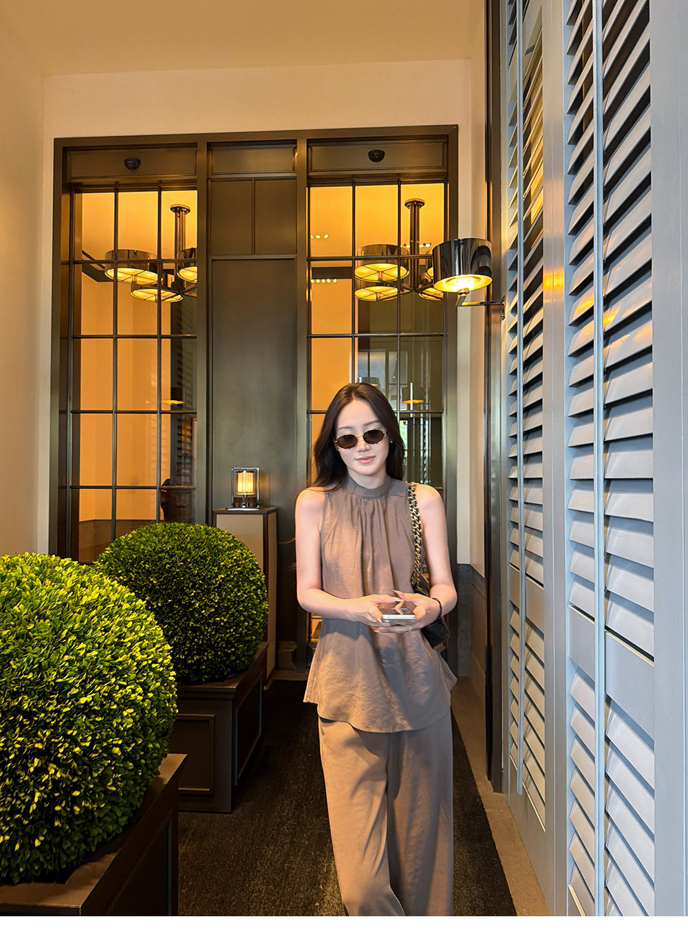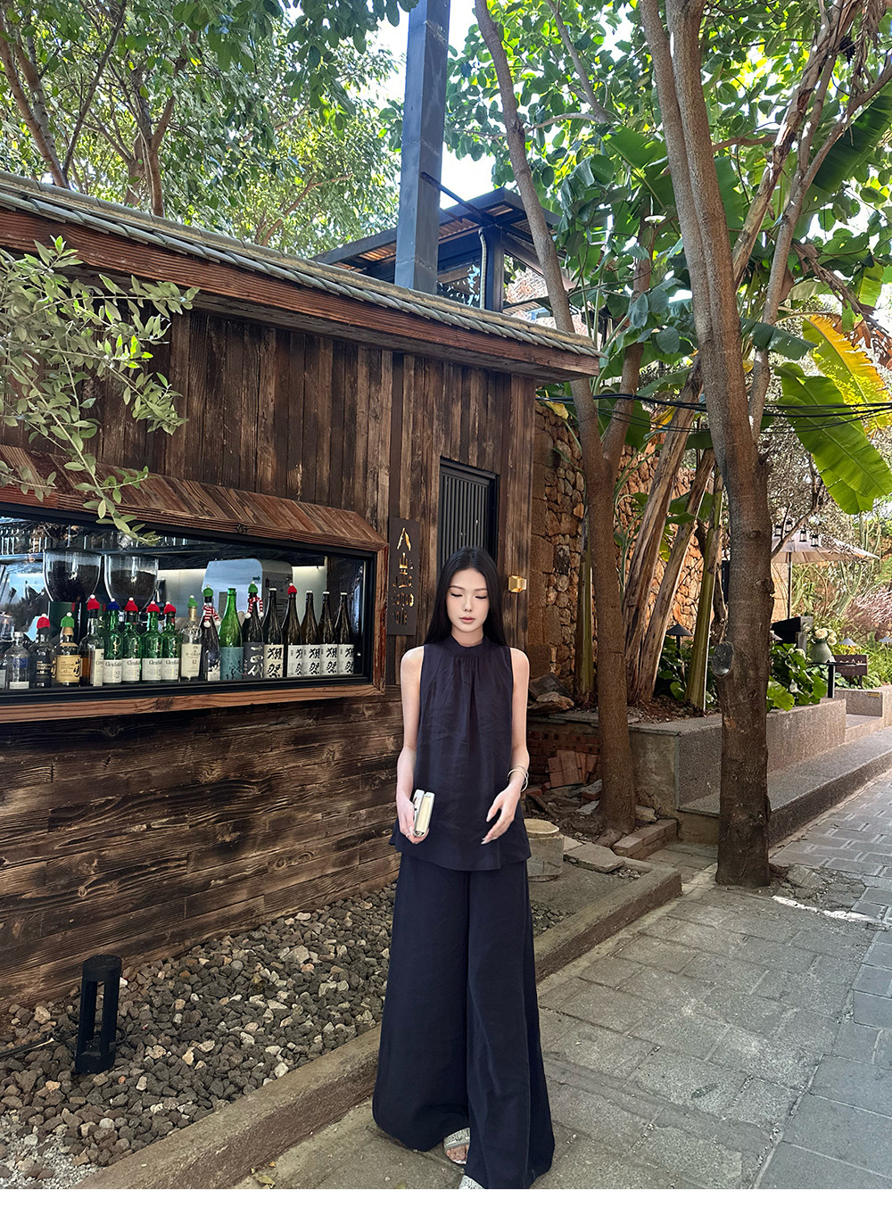 5werkwen Двухцветная медная майка, штаны, полупрозрачная растушевка, свободный прямой крой