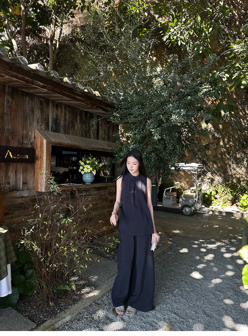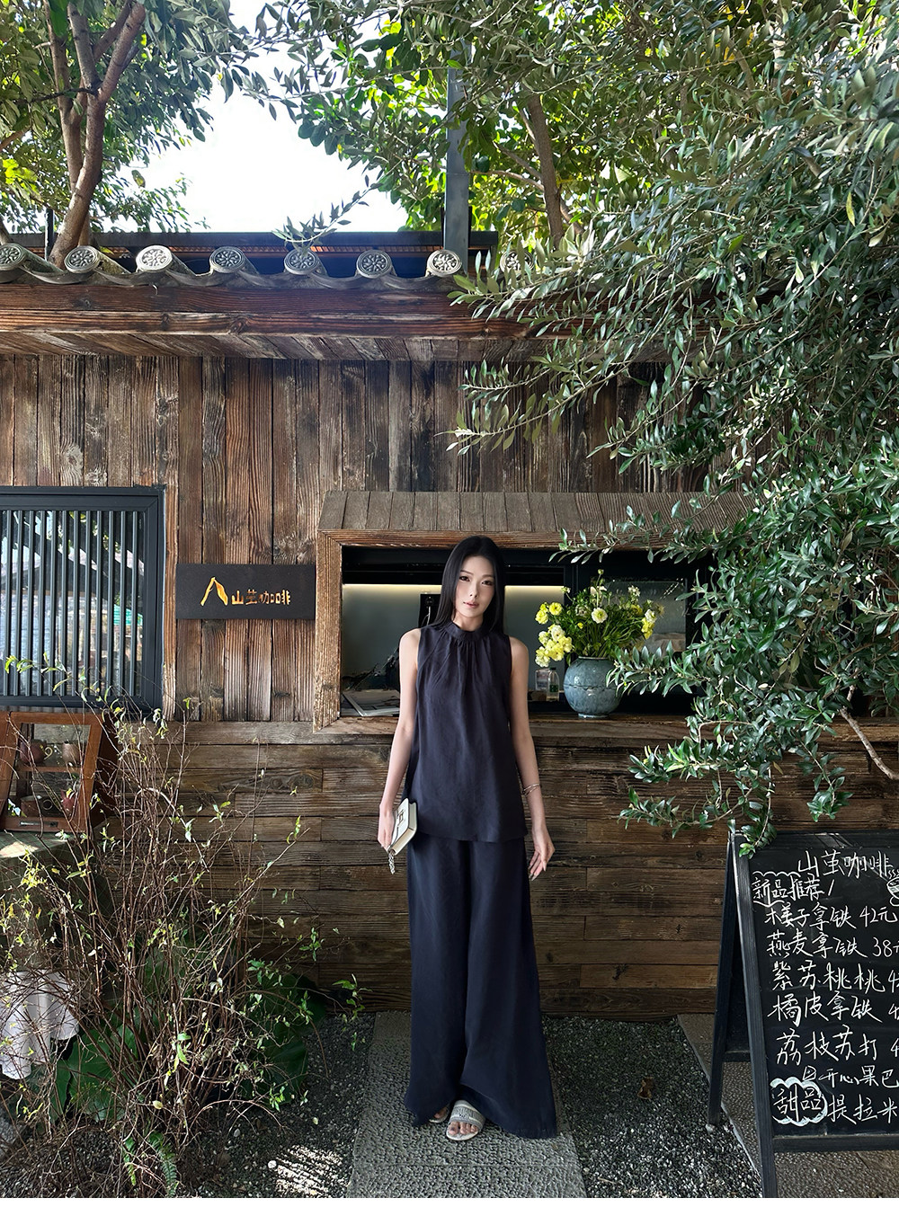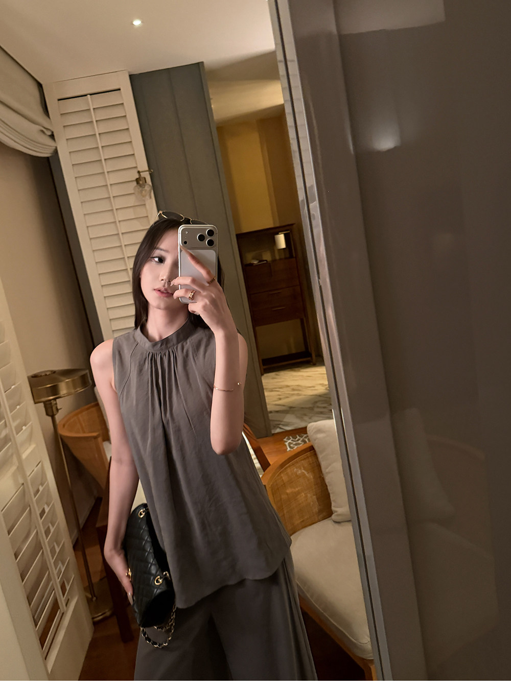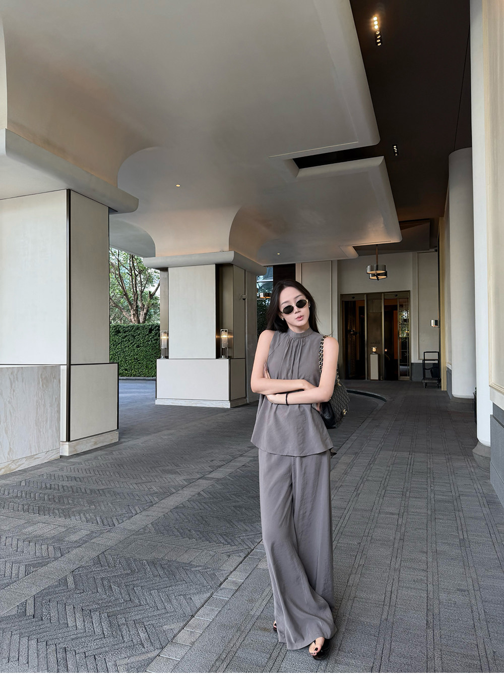 5werkwen Двухцветная медная майка, штаны, полупрозрачная растушевка, свободный прямой крой