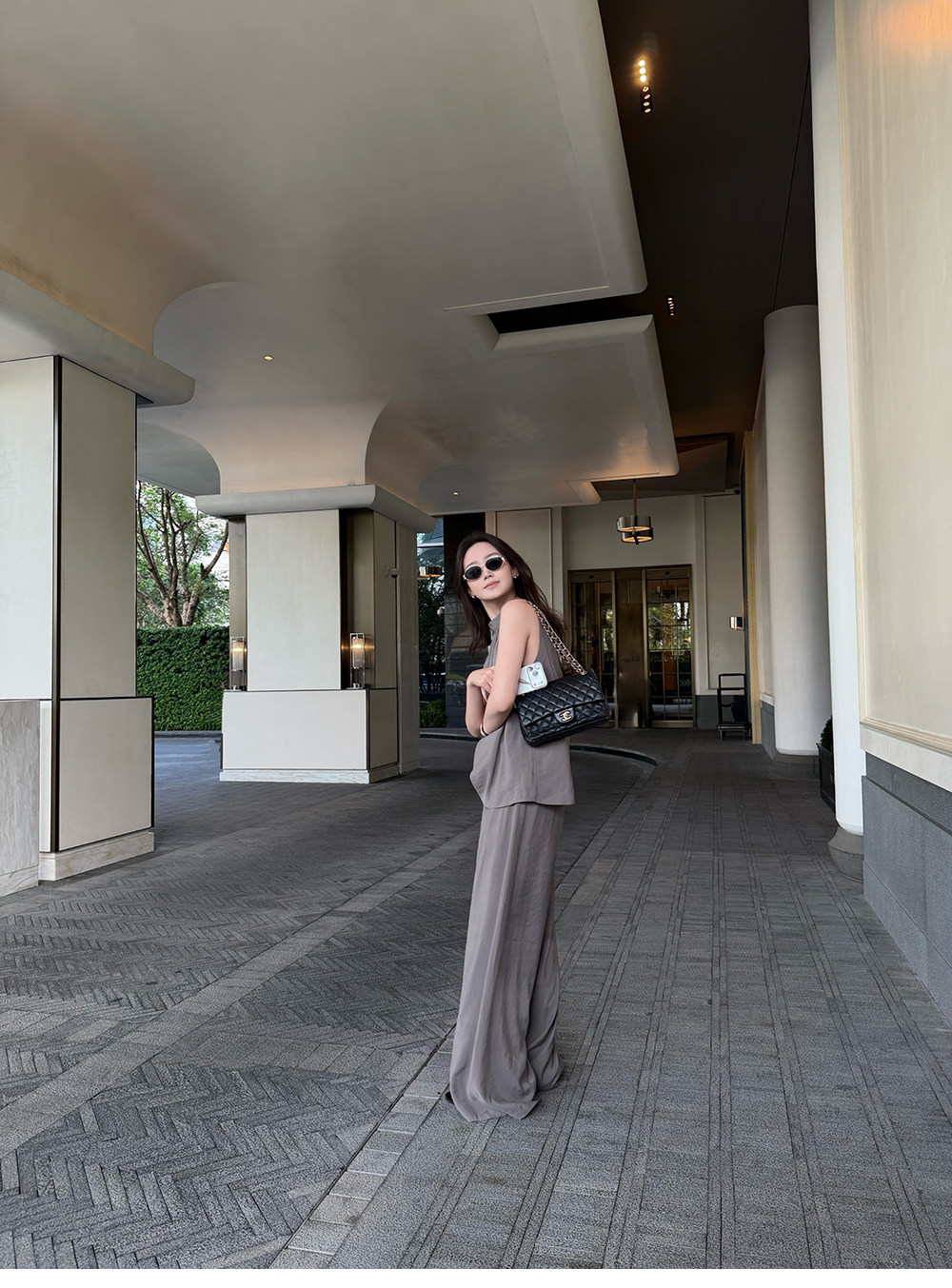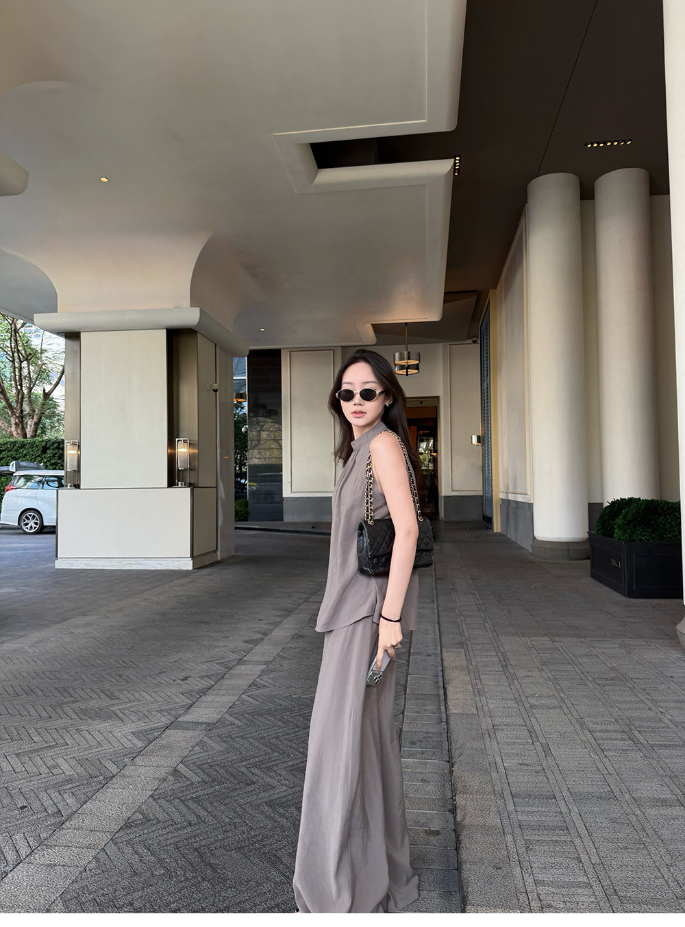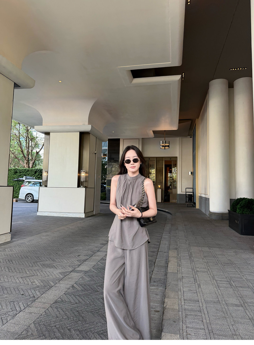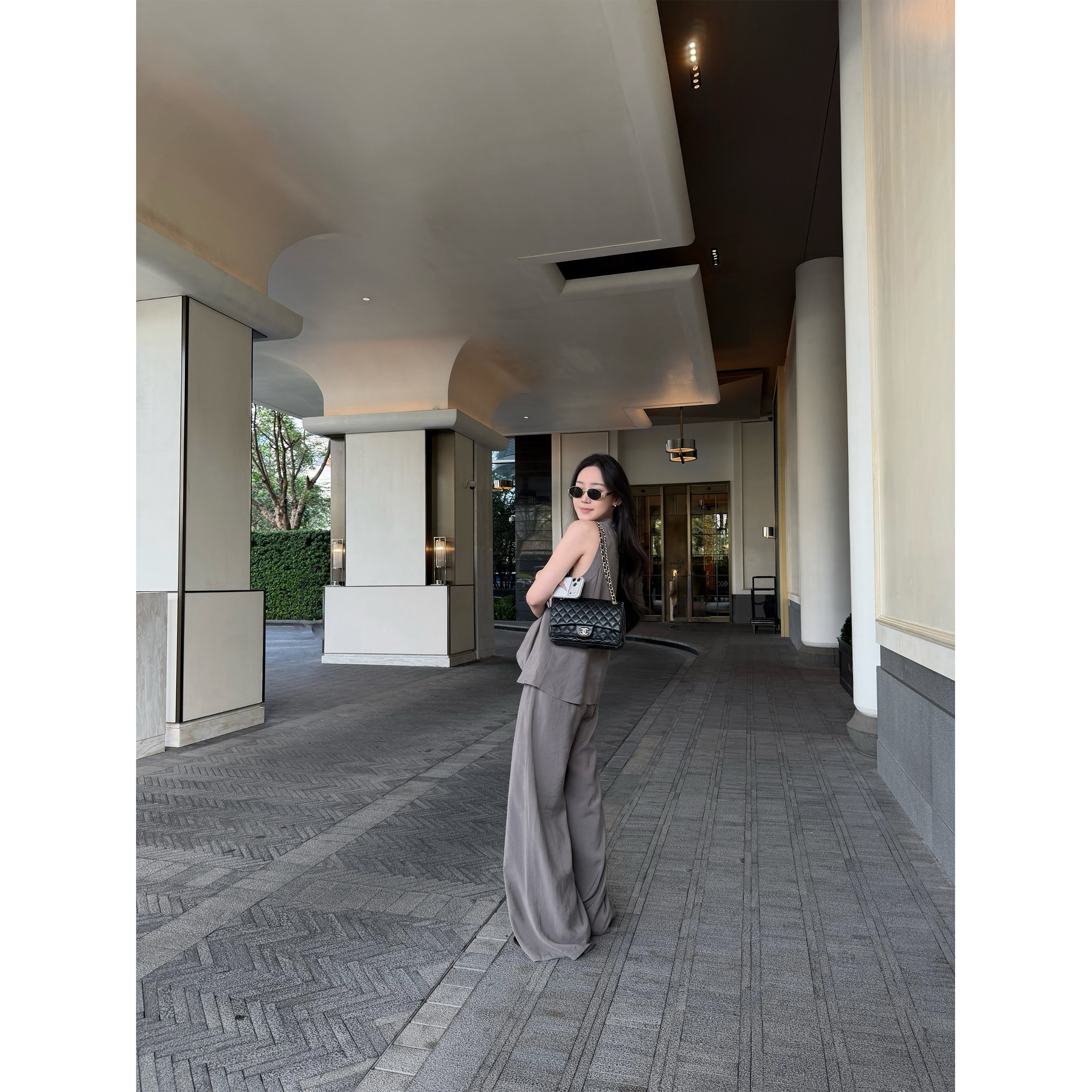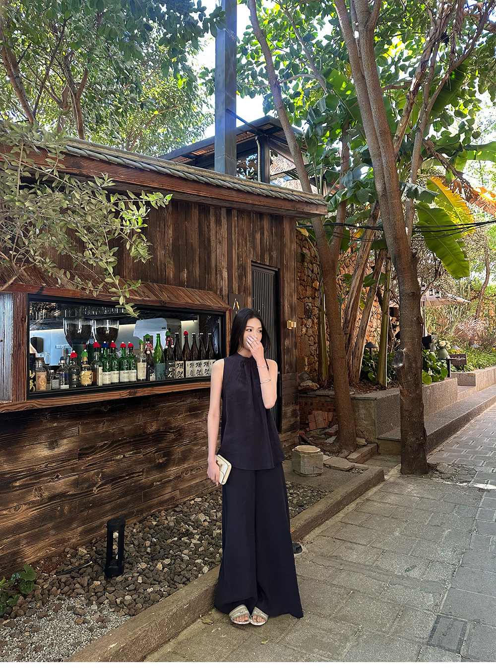 5werkwen Двухцветная медная майка, штаны, полупрозрачная растушевка, свободный прямой крой