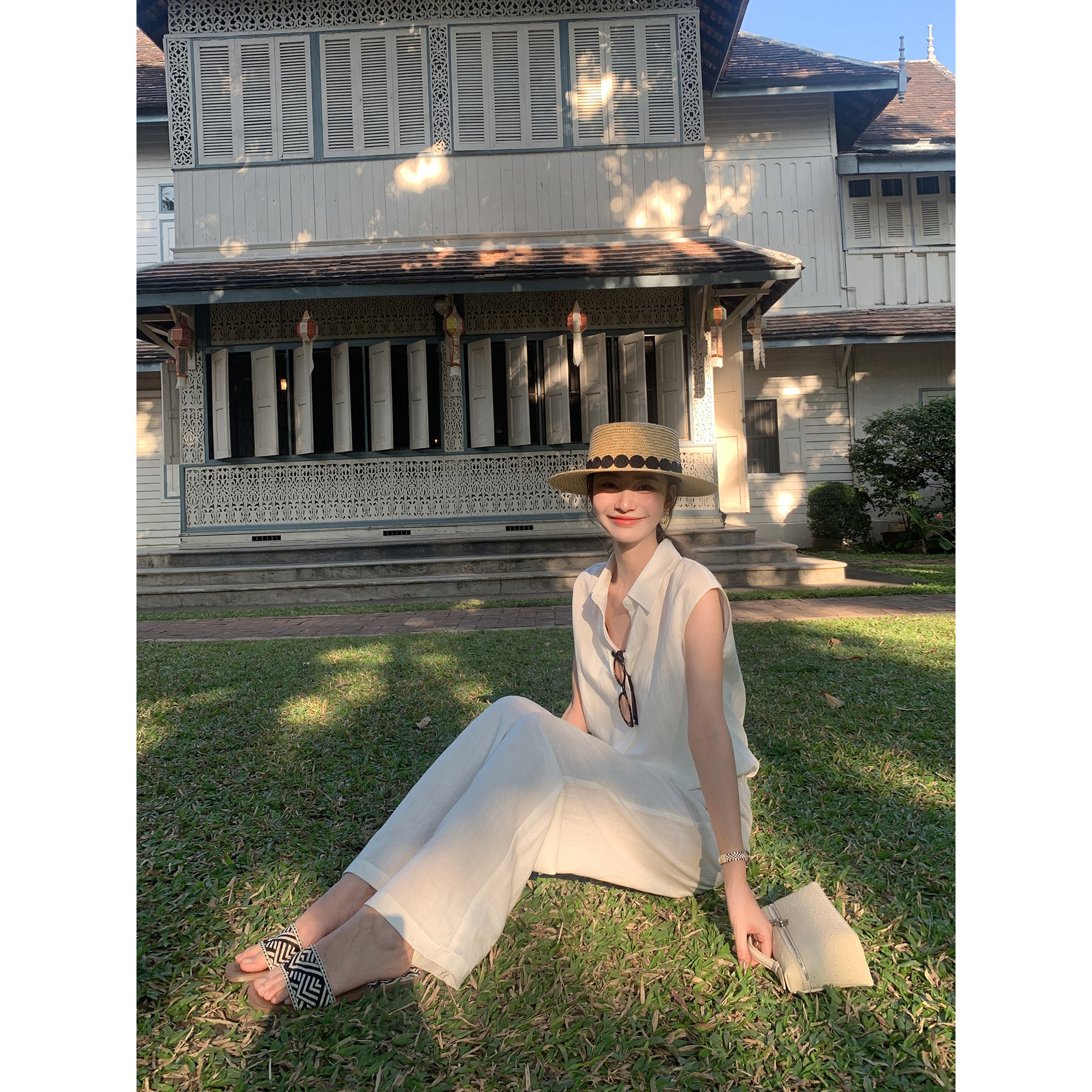 pusumede Классическая рубашка без рукавов, штаны, свободный крой
