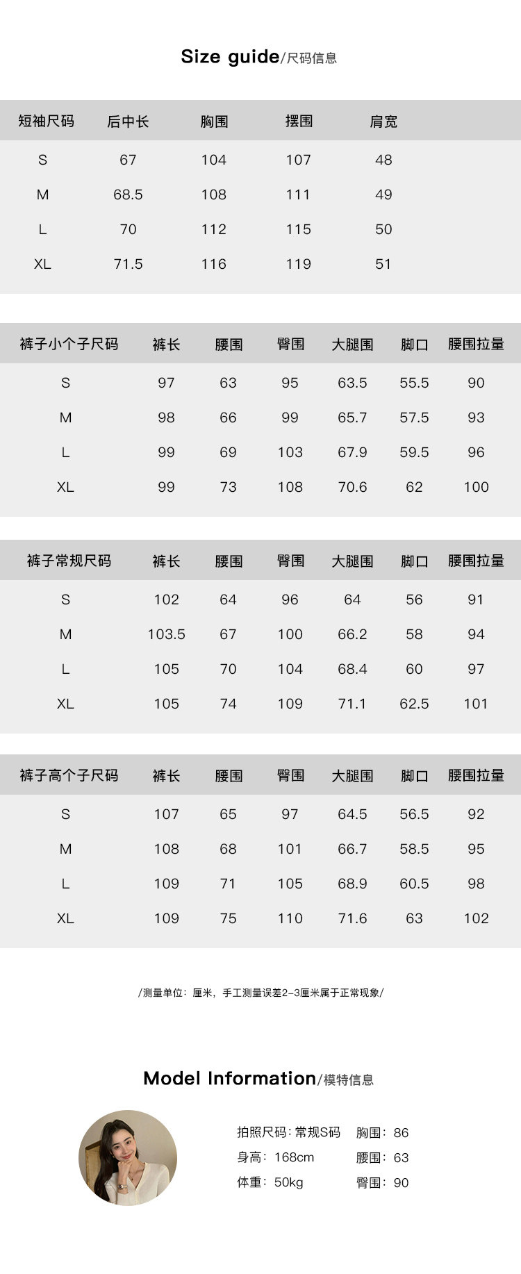 | Цвет: | Рисовое белое первое место, Брюки кремового цвета - миниатюрная готовая комплектация (рекомендация: 155см-160см), Брюки кремового цвета - стандартный готовый комплект (рекомендуемый рост 161см-166см), В наличии кремово-белые брюки для высоких людей (рекомендуется: 167см-172см) |