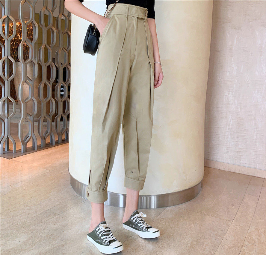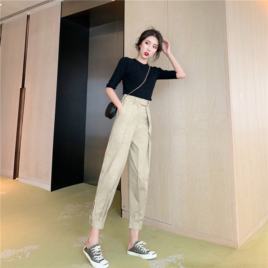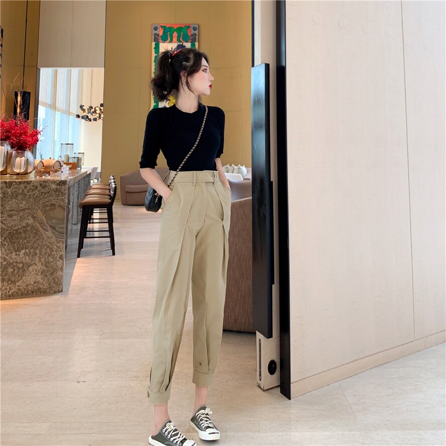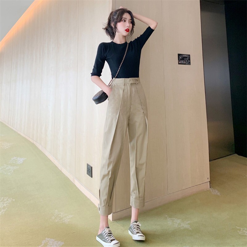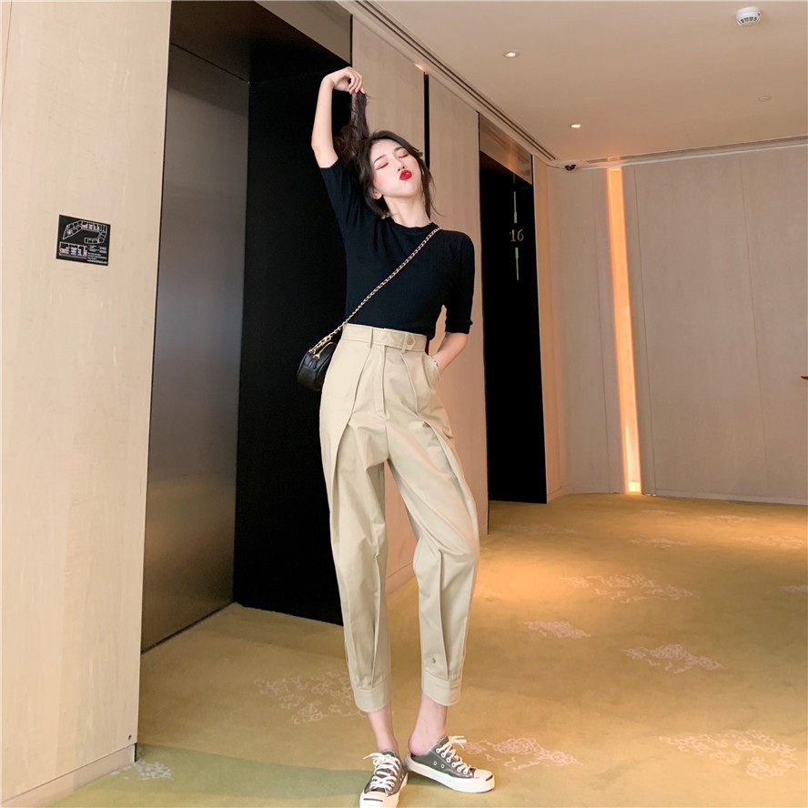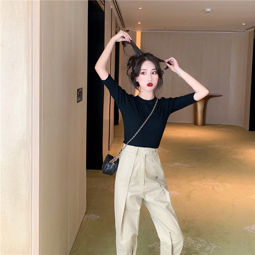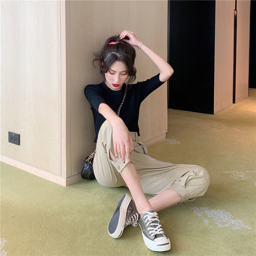 Штаны, летний универсальный черный комплект, французский стиль, в корейском стиле