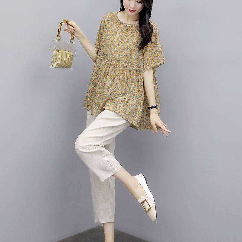 Летний модный комплект, из хлопка и льна, сезон 2021, в западном стиле, большой размер, подходит для полных девушек, по фигуре