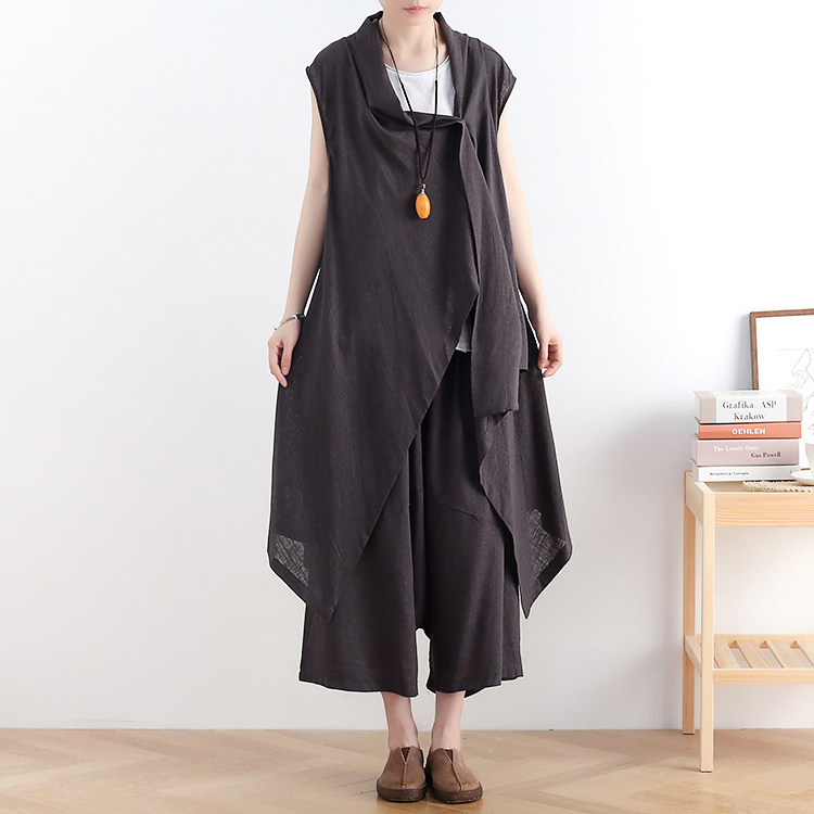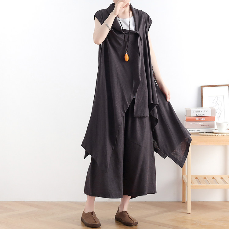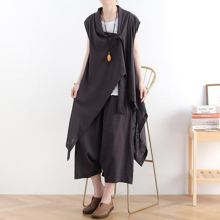 Летний оригинальный дизайнерский хлопковый жилет, штаны, комплект, сезон 2021, оверсайз, в западном стиле