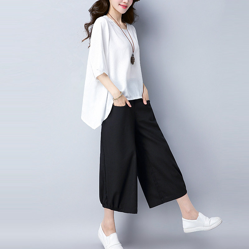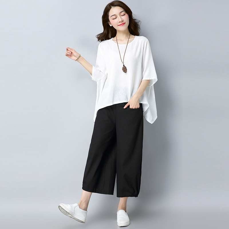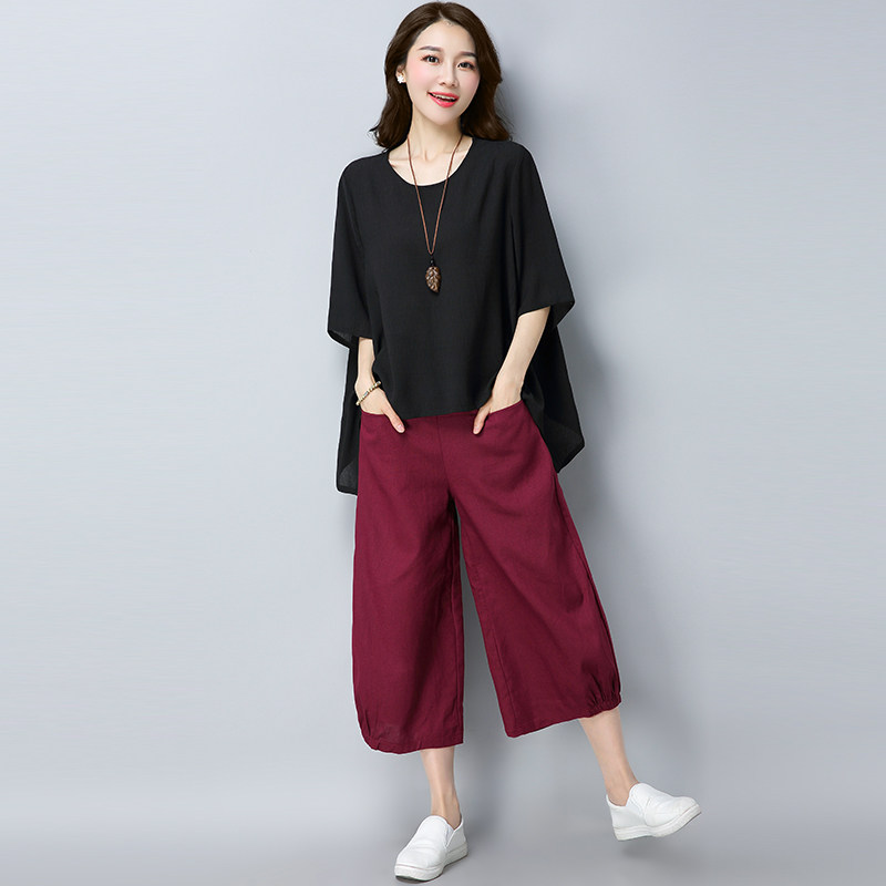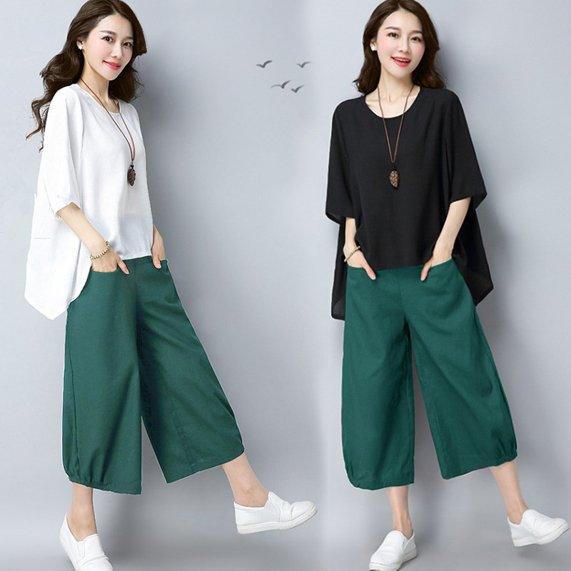 Летний комплект, штаны для отдыха, из хлопка и льна, 2020, оверсайз, большой размер, в западном стиле