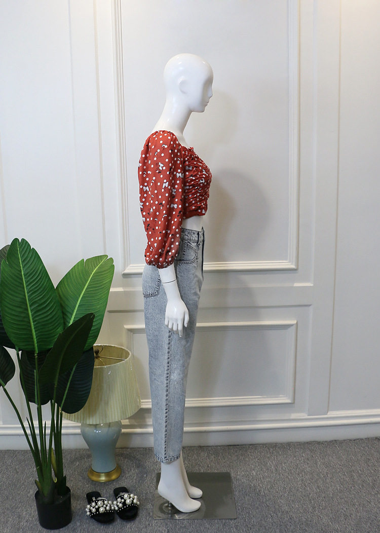 - Красный топ в горошек