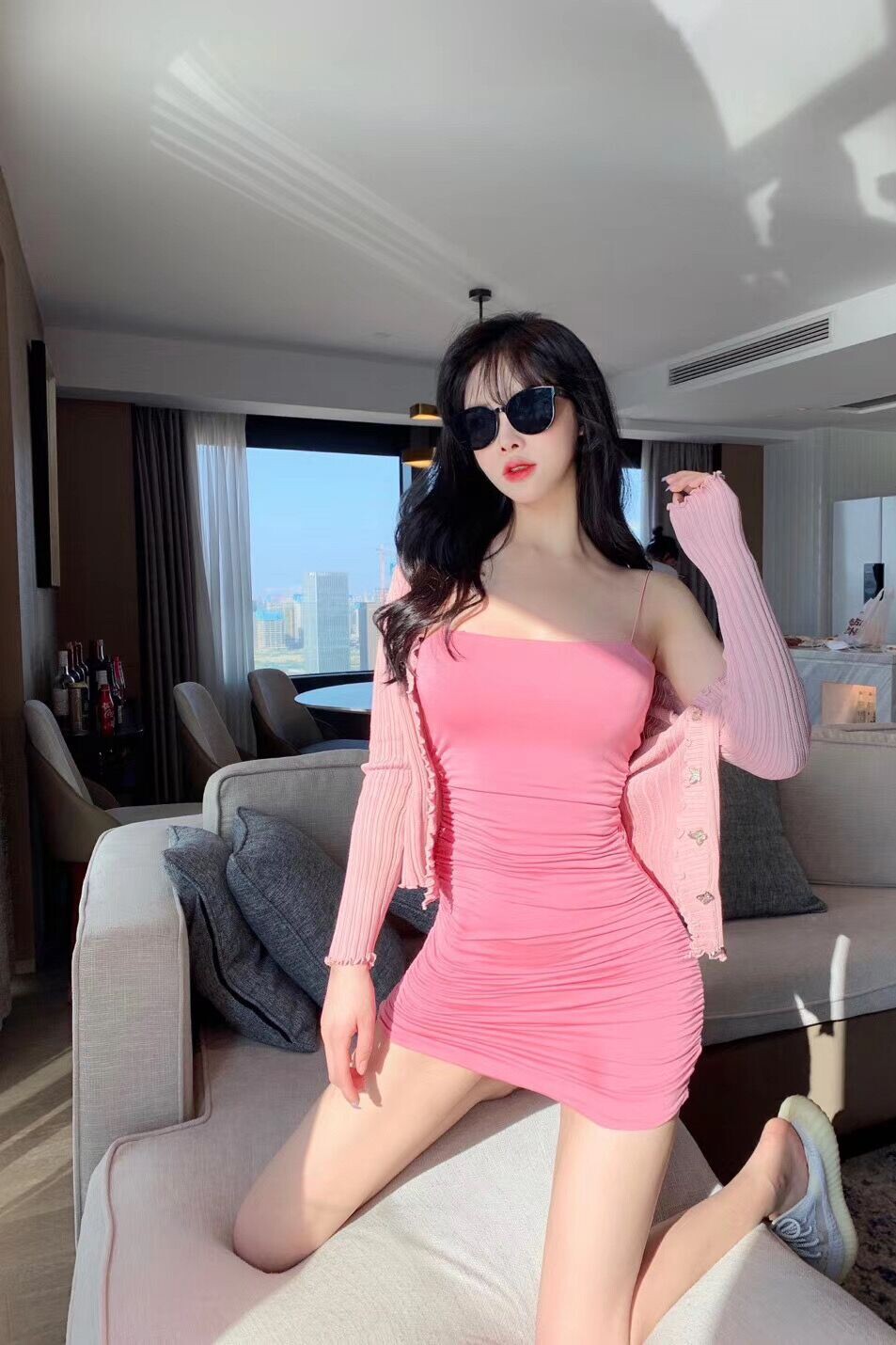 Сексуальное платье-комбинация, лонгслив, свитер, комплект, открытые плечи, облегающий крой