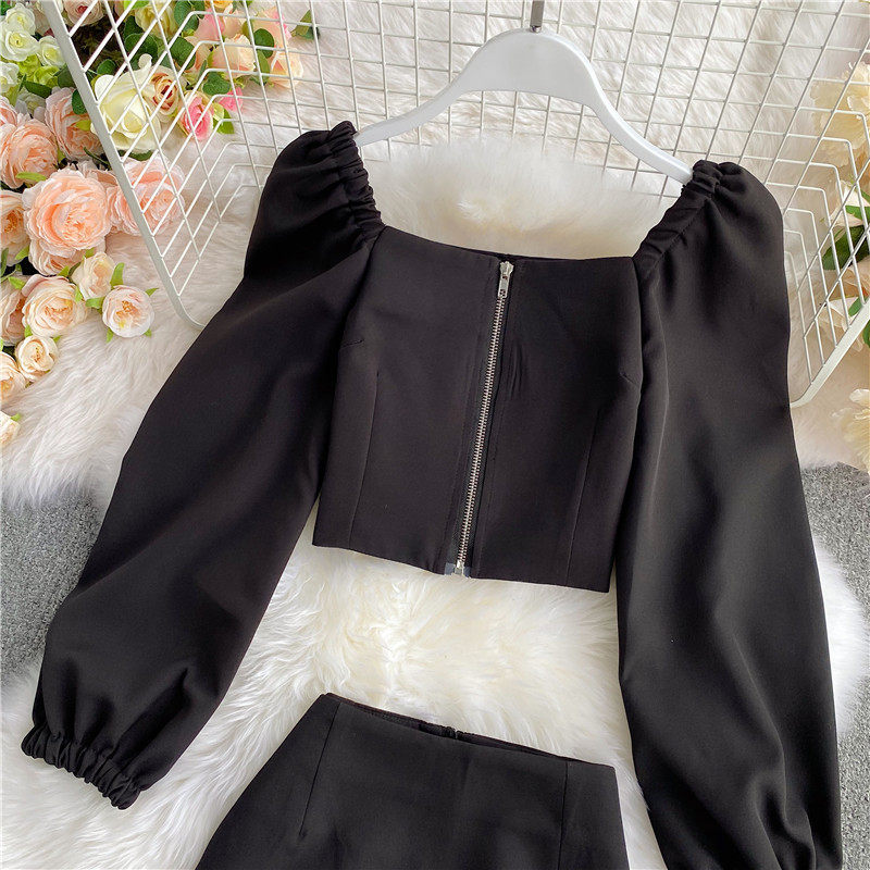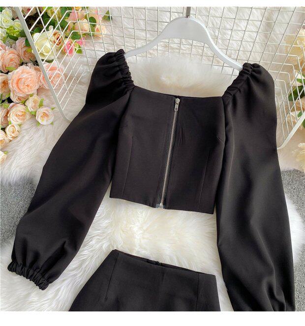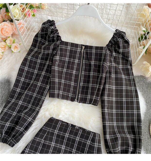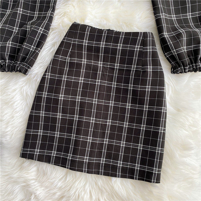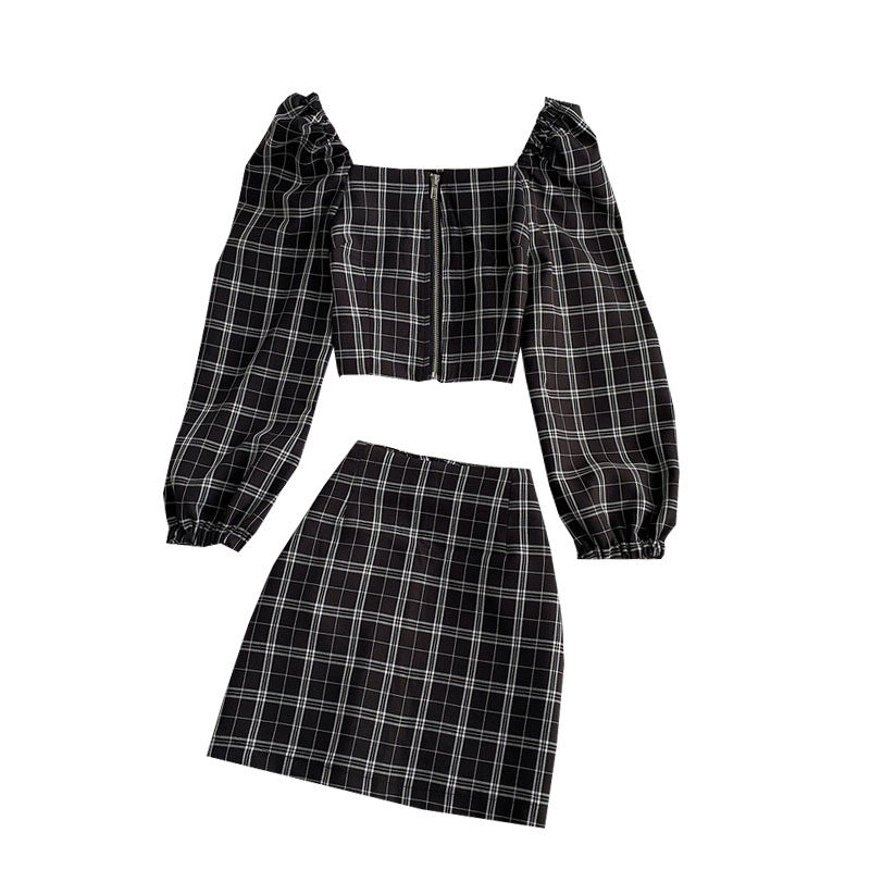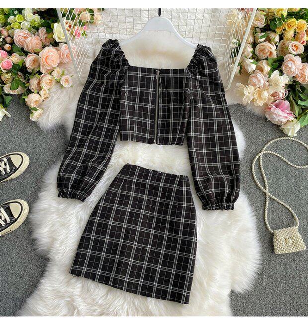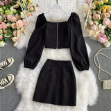 Мини-юбка, осенний комплект, короткая юбка, в западном стиле, квадратный вырез, А-силуэт