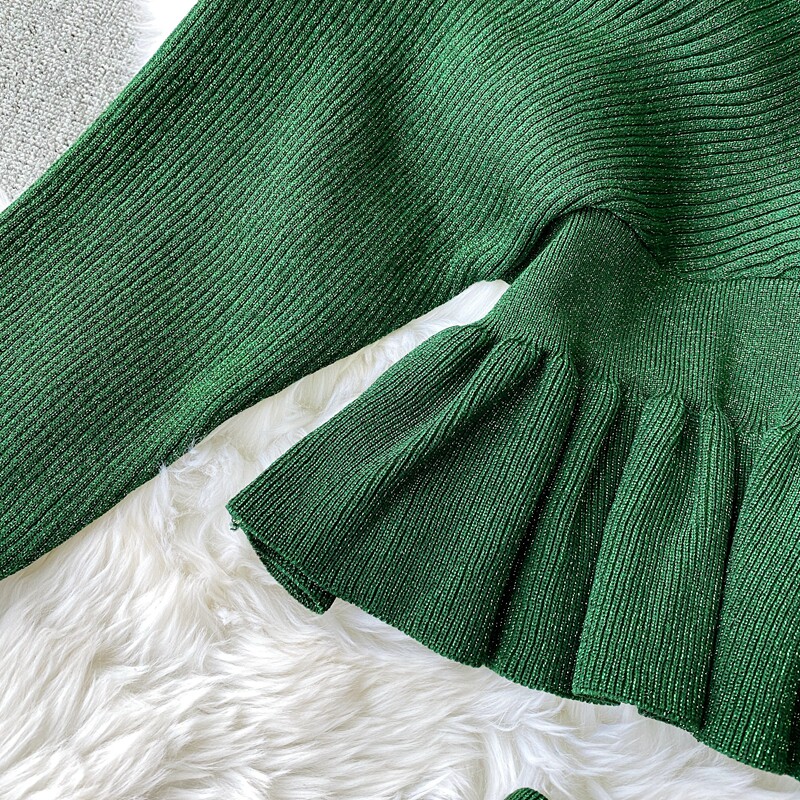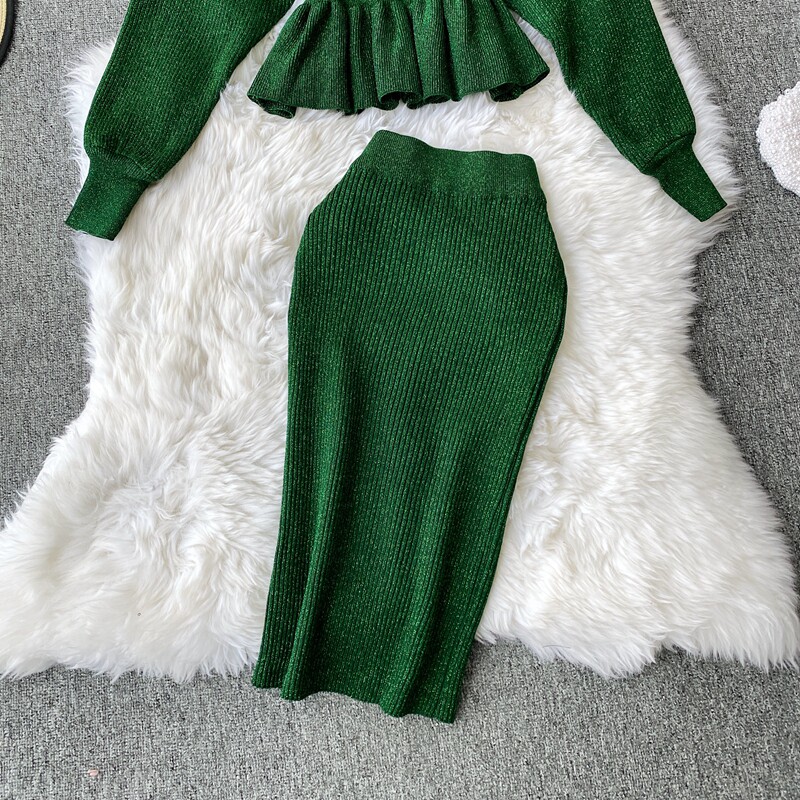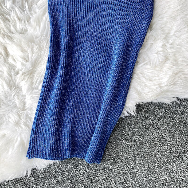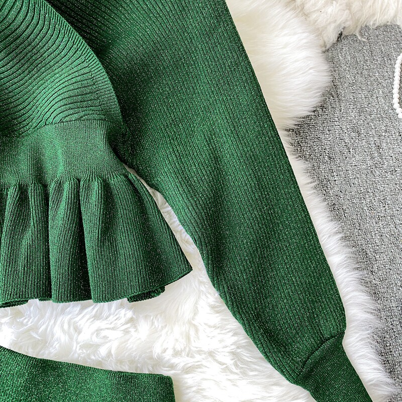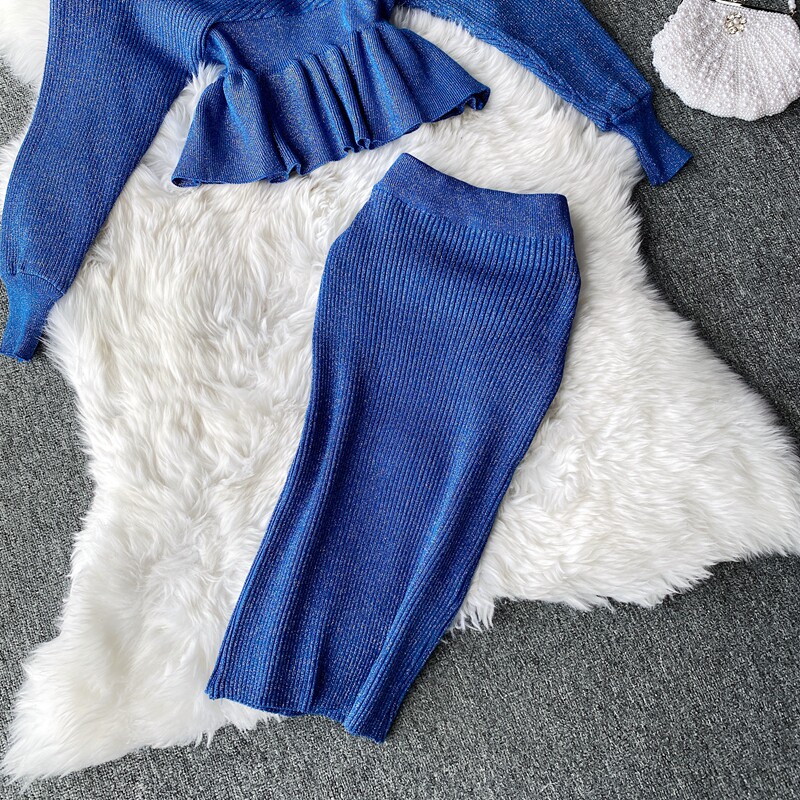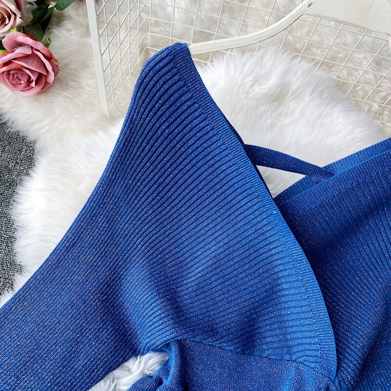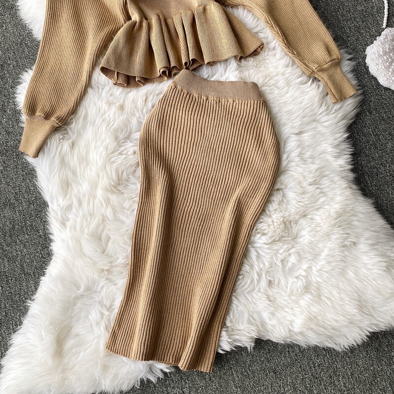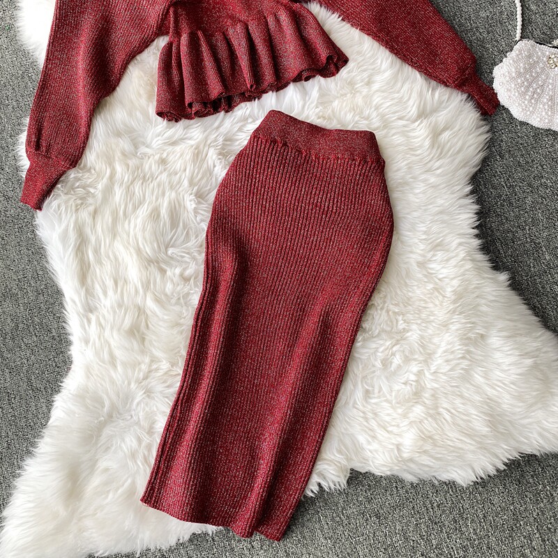 Демисезонный лонгслив, трикотажный свитер, поясная сумка, юбка, комплект, в корейском стиле, V-образный вырез, с открытой спиной, высокая талия