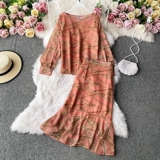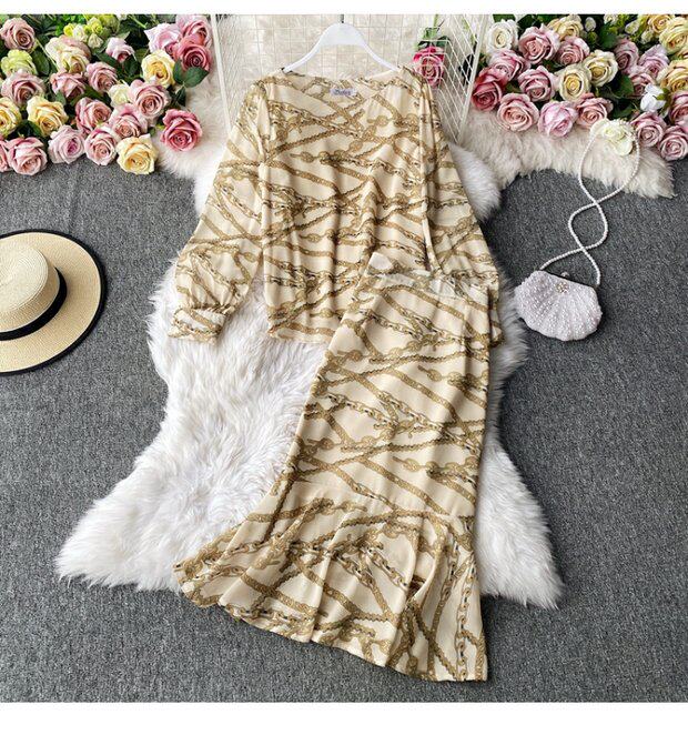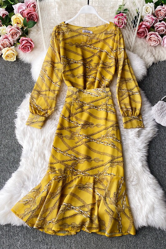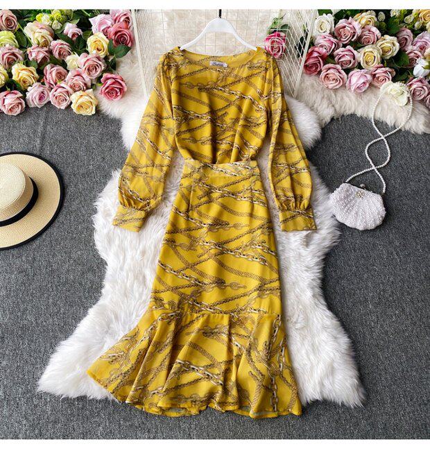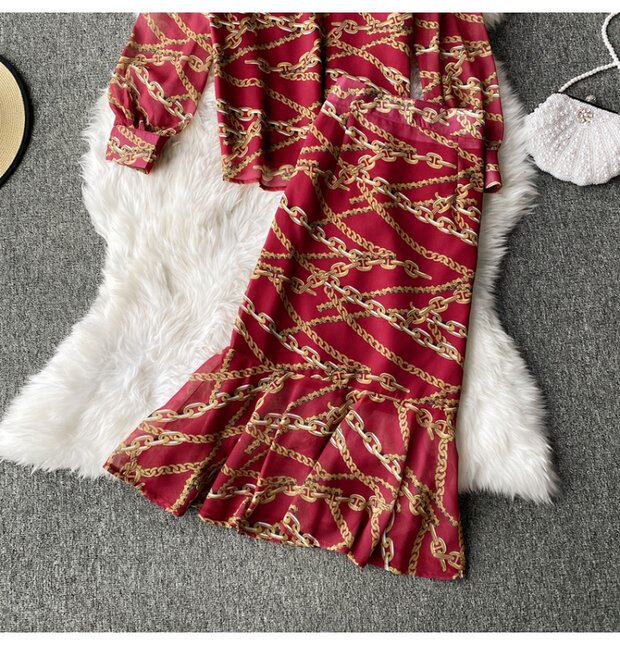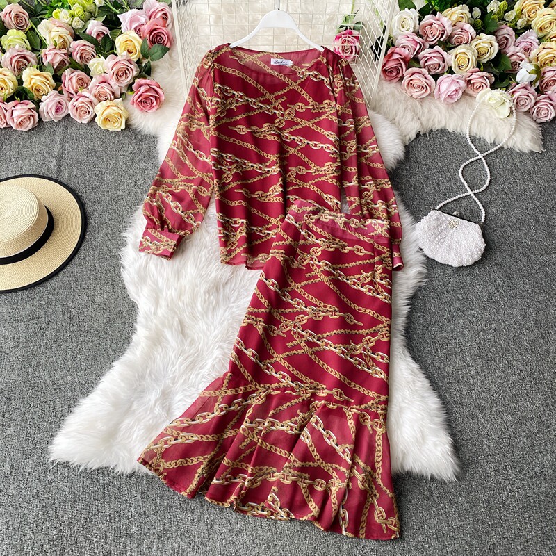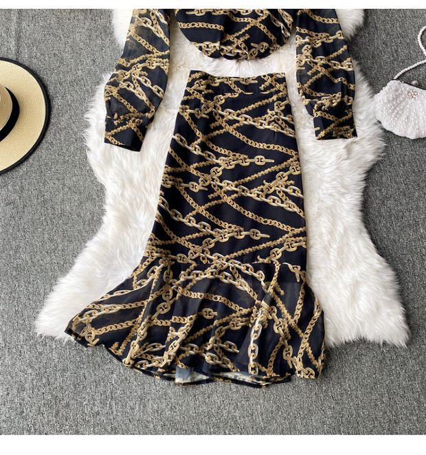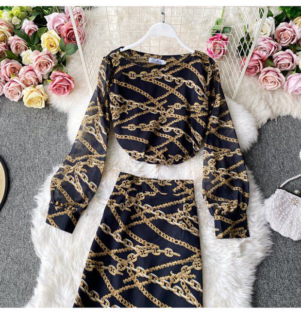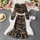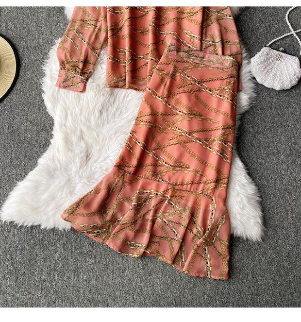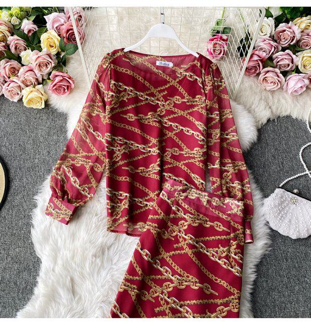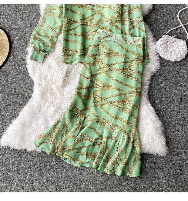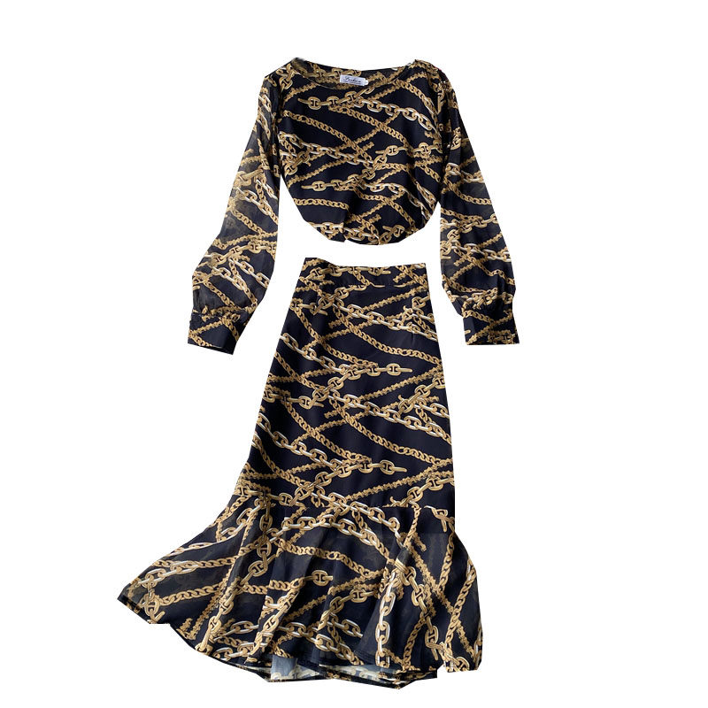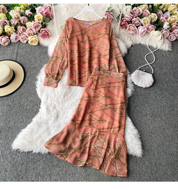 Осенний комплект, шифоновый лонгслив с круглым воротником, юбка, высокая талия, крой «рыбий хвост», с акцентом на бедрах