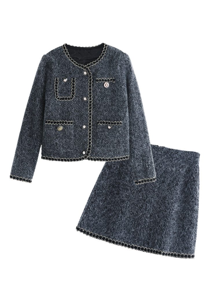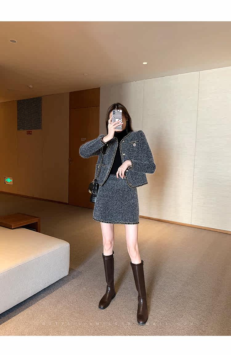 Демисезонный комплект, куртка, приталенная юбка, подходит для подростков, высокая талия