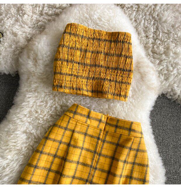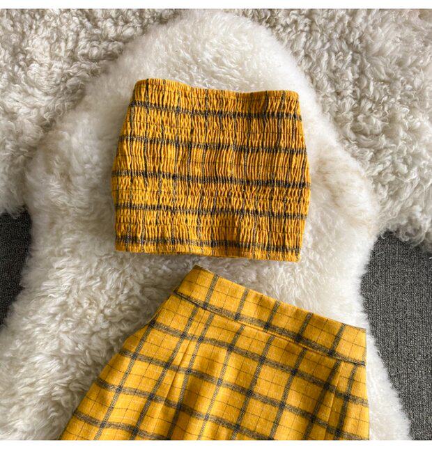 Летний комплект, топ без лямок, бюстгальтер-топ, юбка, высокая талия, А-силуэт