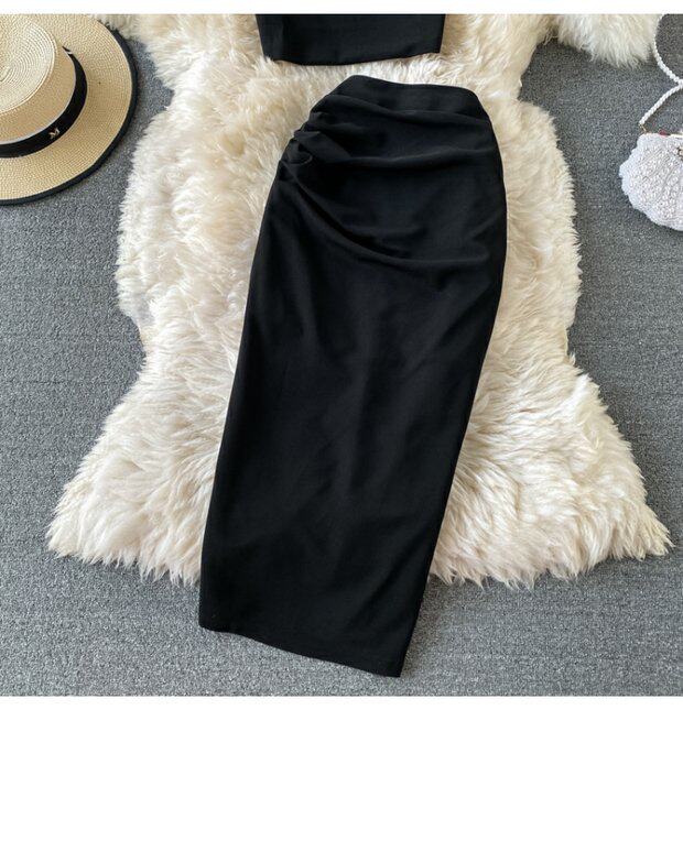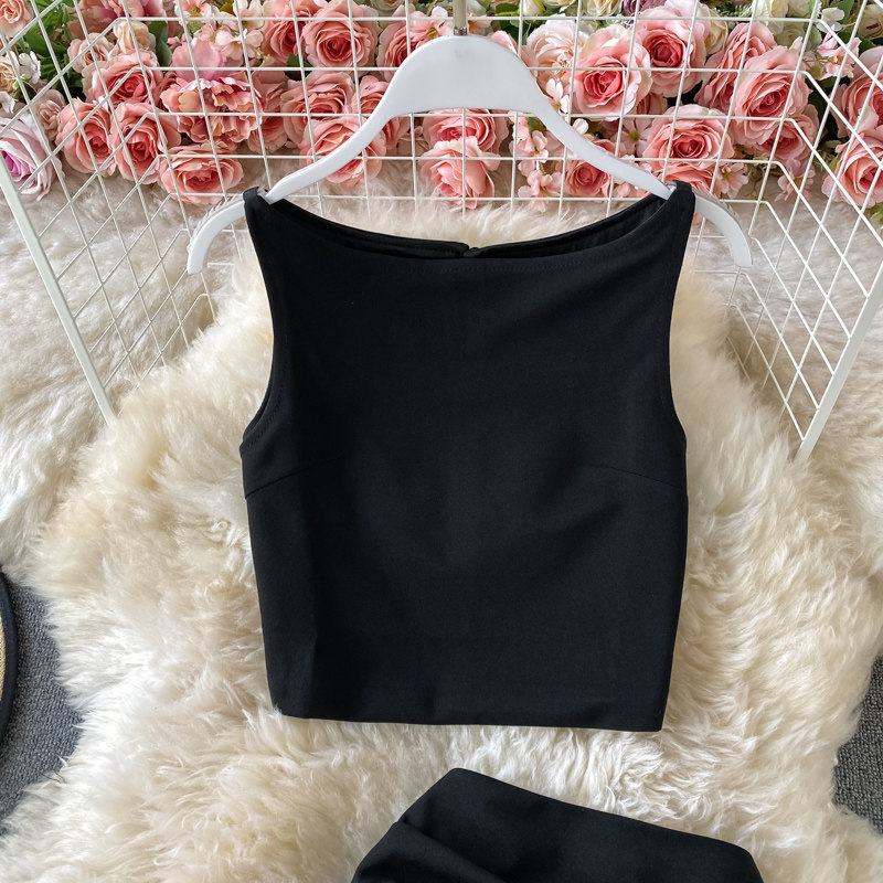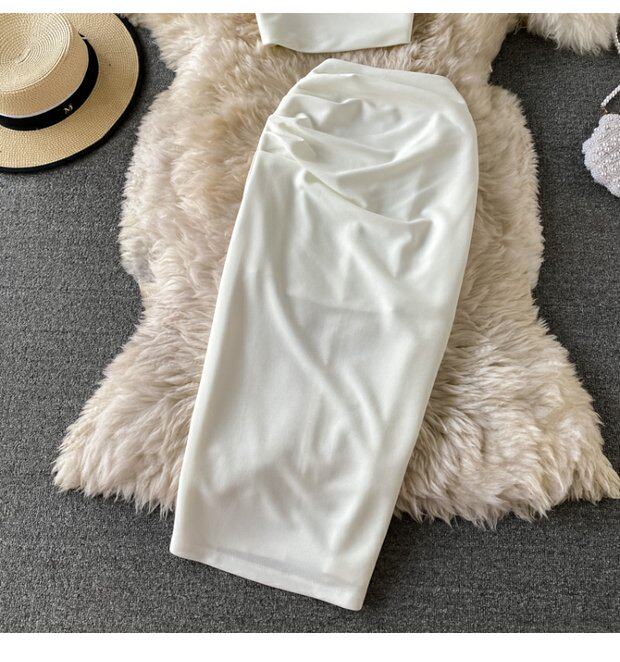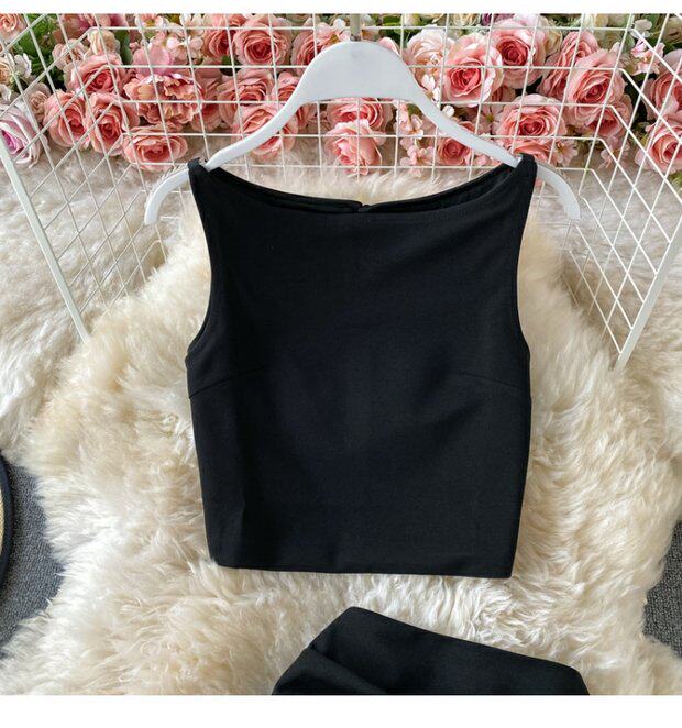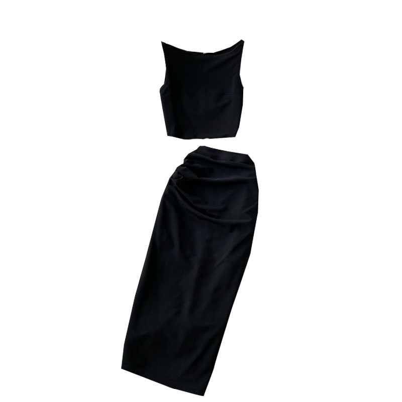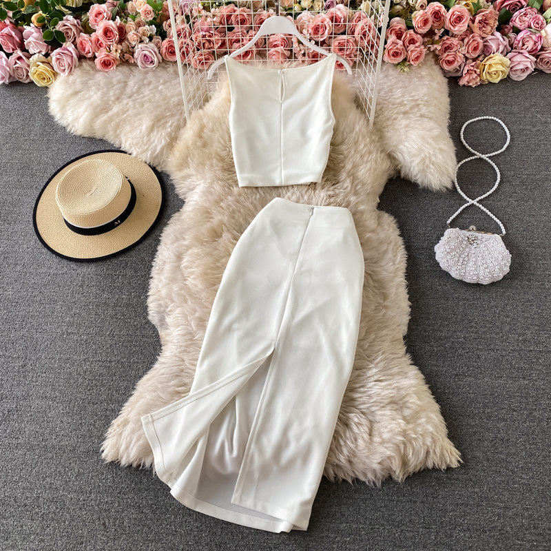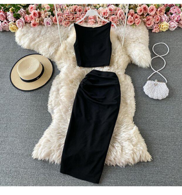 Летняя майка топ без рукавов, комплект, длинная юбка, высокая талия, средней длины