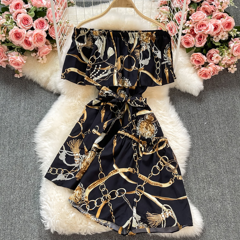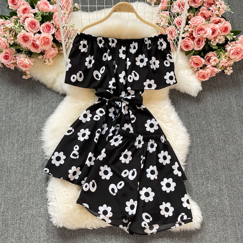 Летнее ретро платье, мини-юбка, комплект, шорты, штаны, открытые плечи, в цветочек, короткий рукав, высокая талия