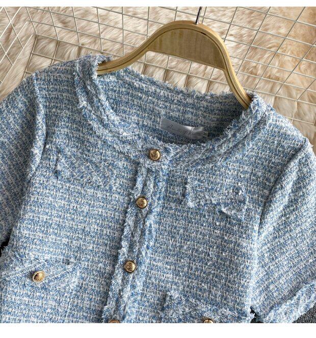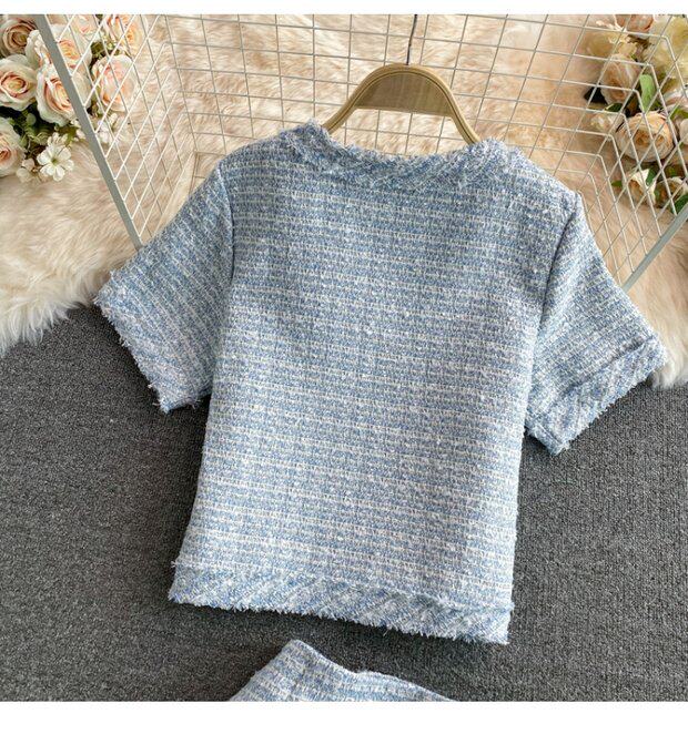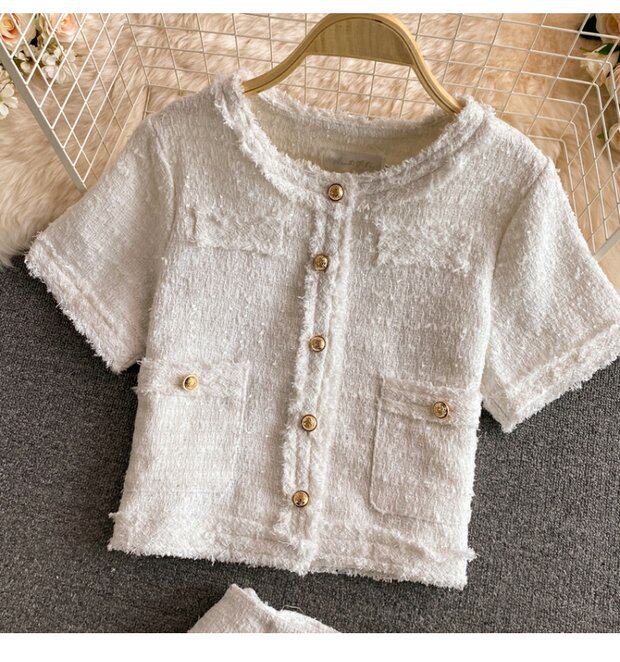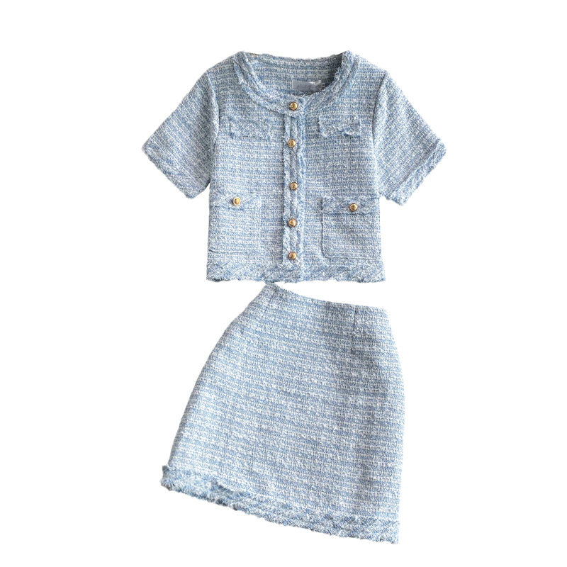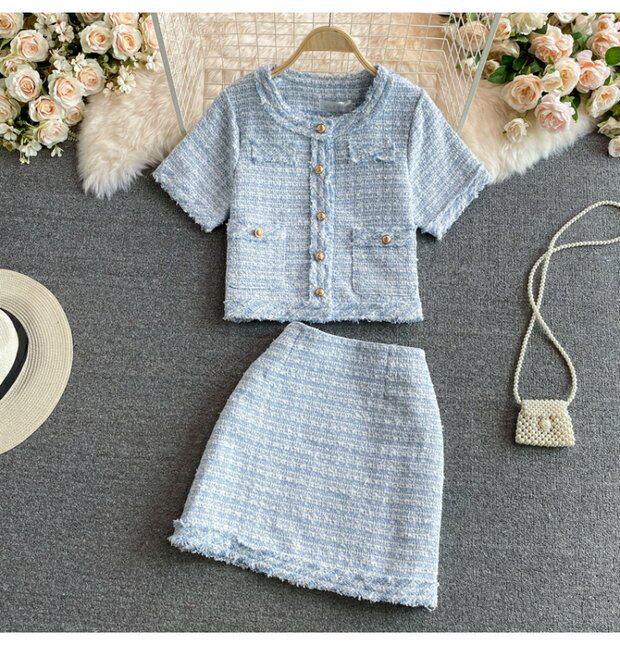 Пиджак классического кроя, куртка, юбка, стиль, короткий рукав, высокая талия, с акцентом на бедрах