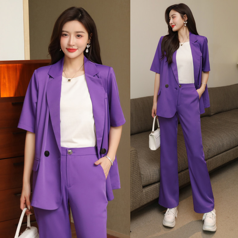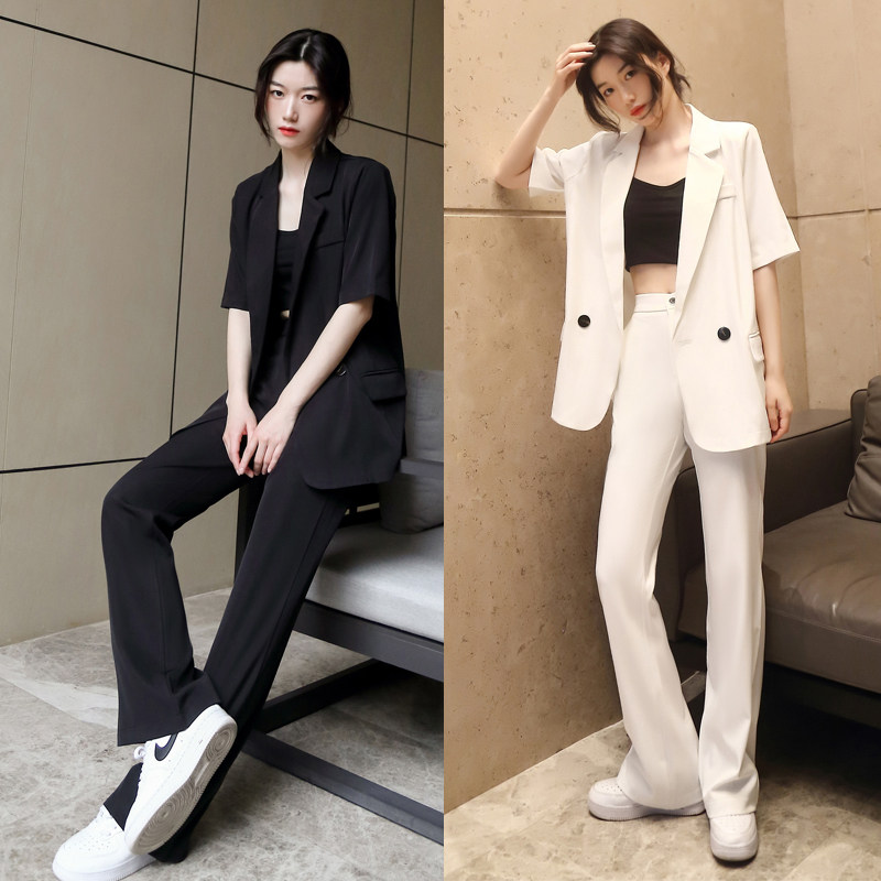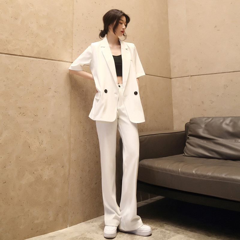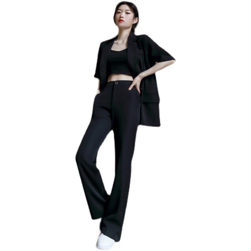 Ретро модный костюм, штаны, штаны-клёш, комплект, короткий рукав, свободный крой