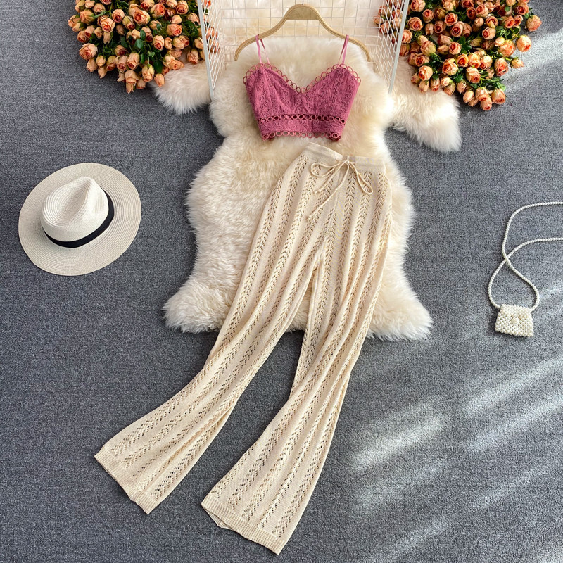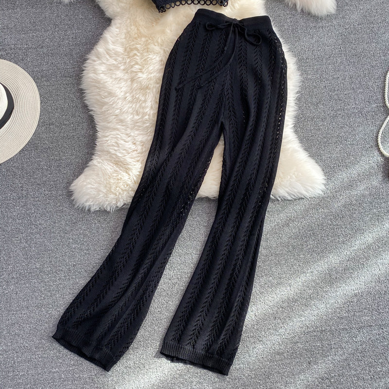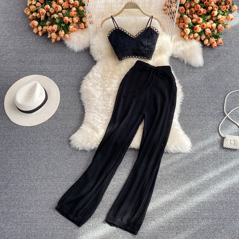Комплект, повседневные брюки, штаны, летний топ с чашечками, майка, высокая талия, свободный прямой крой