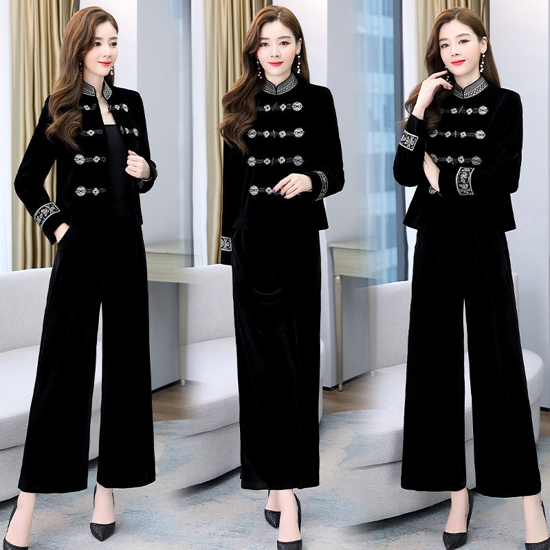 Осенний комплект, штаны, яркий броский стиль, 2021 года, городской стиль, китайский стиль, с вышивкой