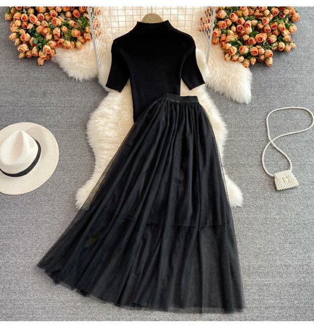 Универсальная приталенная длинная юбка, трикотажный комплект, А-силуэт, высокая талия, средней длины