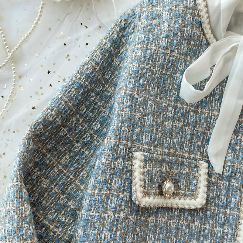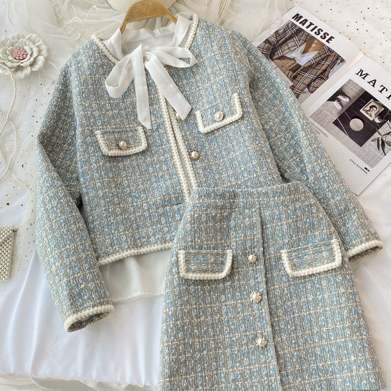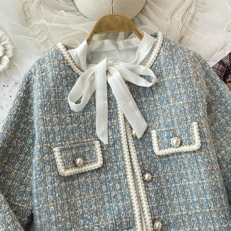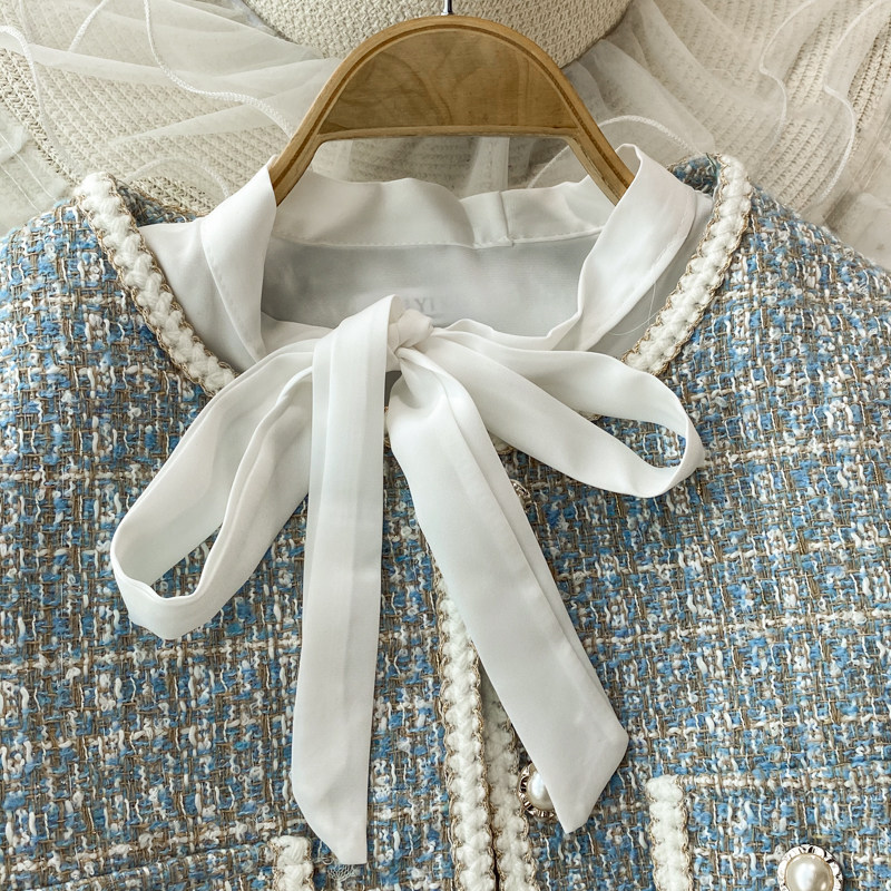Пальто, комплект с бантиком, рубашка, юбка, в стиле Шанель, 3 предмета, с акцентом на бедрах