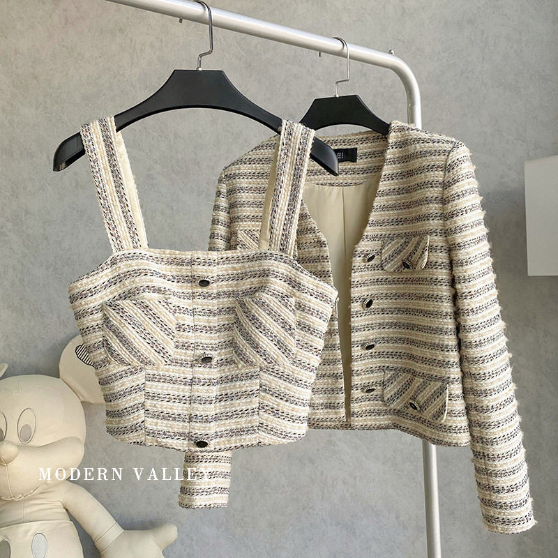 Осенняя куртка, жилет, комплект, в стиле Шанель, свободный крой