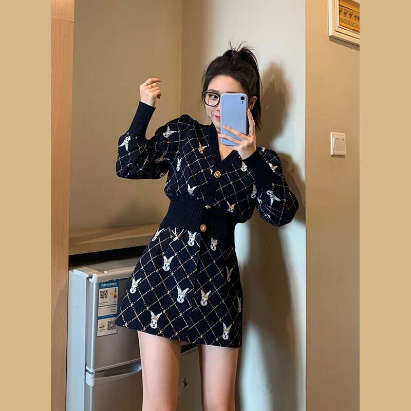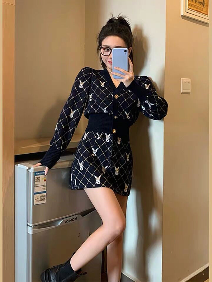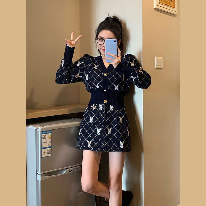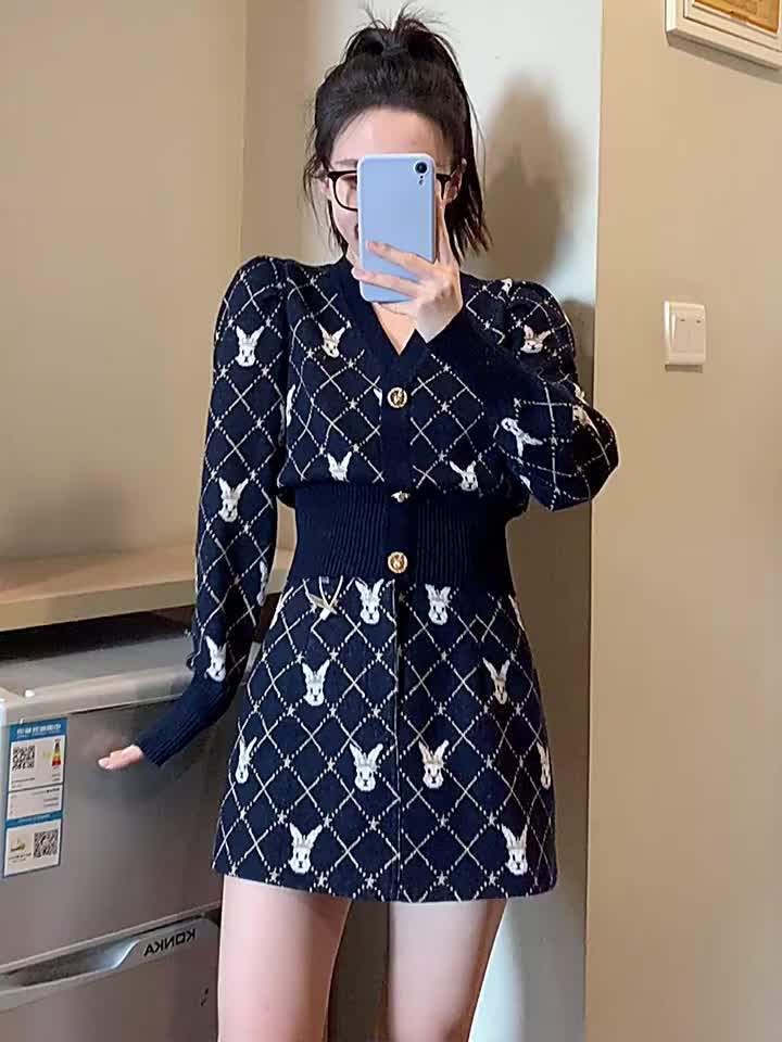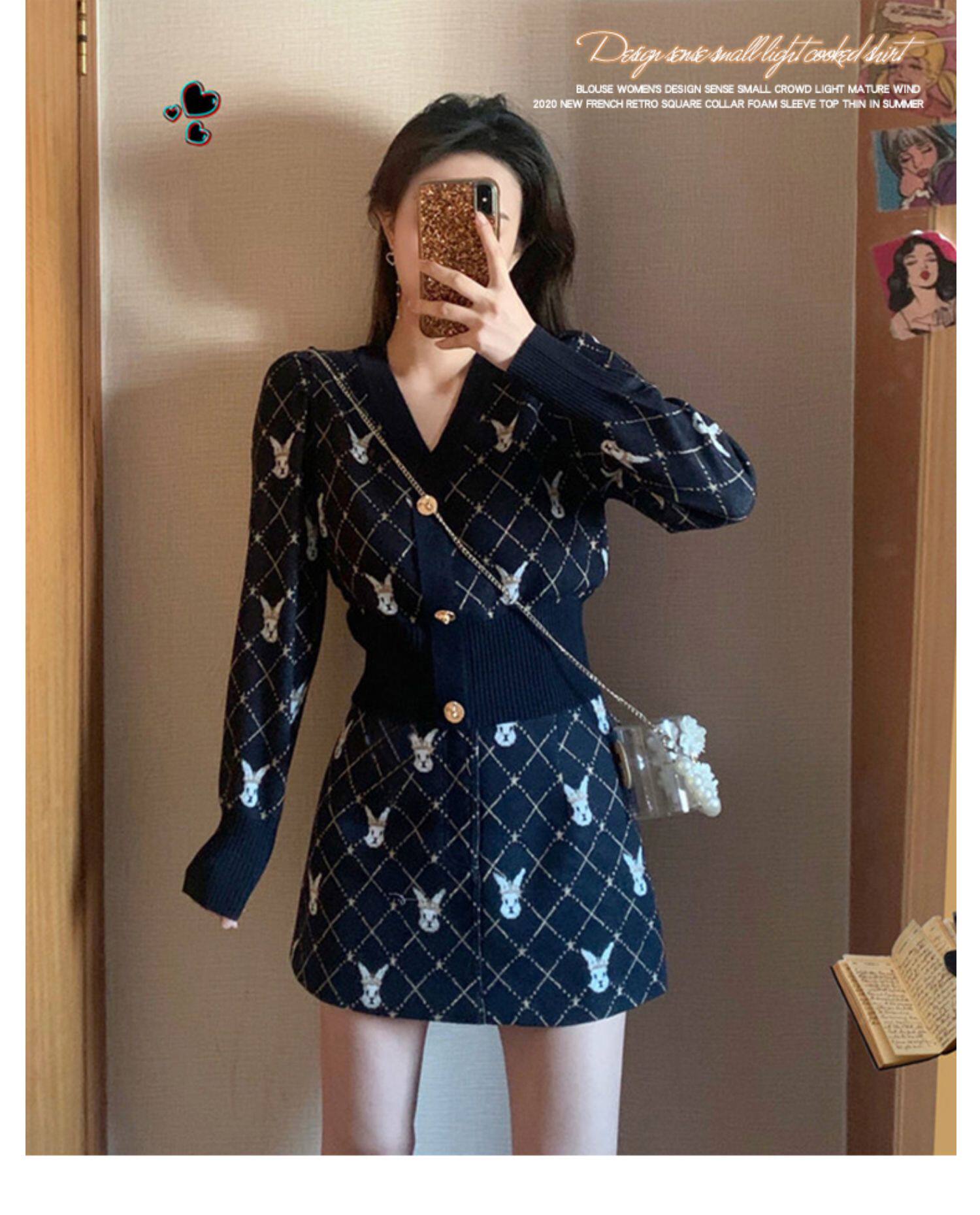 Модная трикотажная юбка, комплект, в стиле Шанель