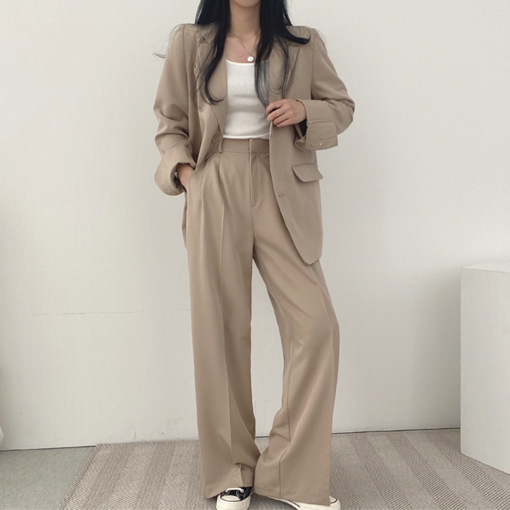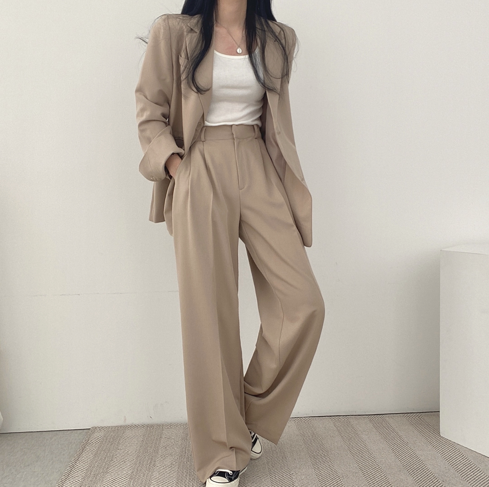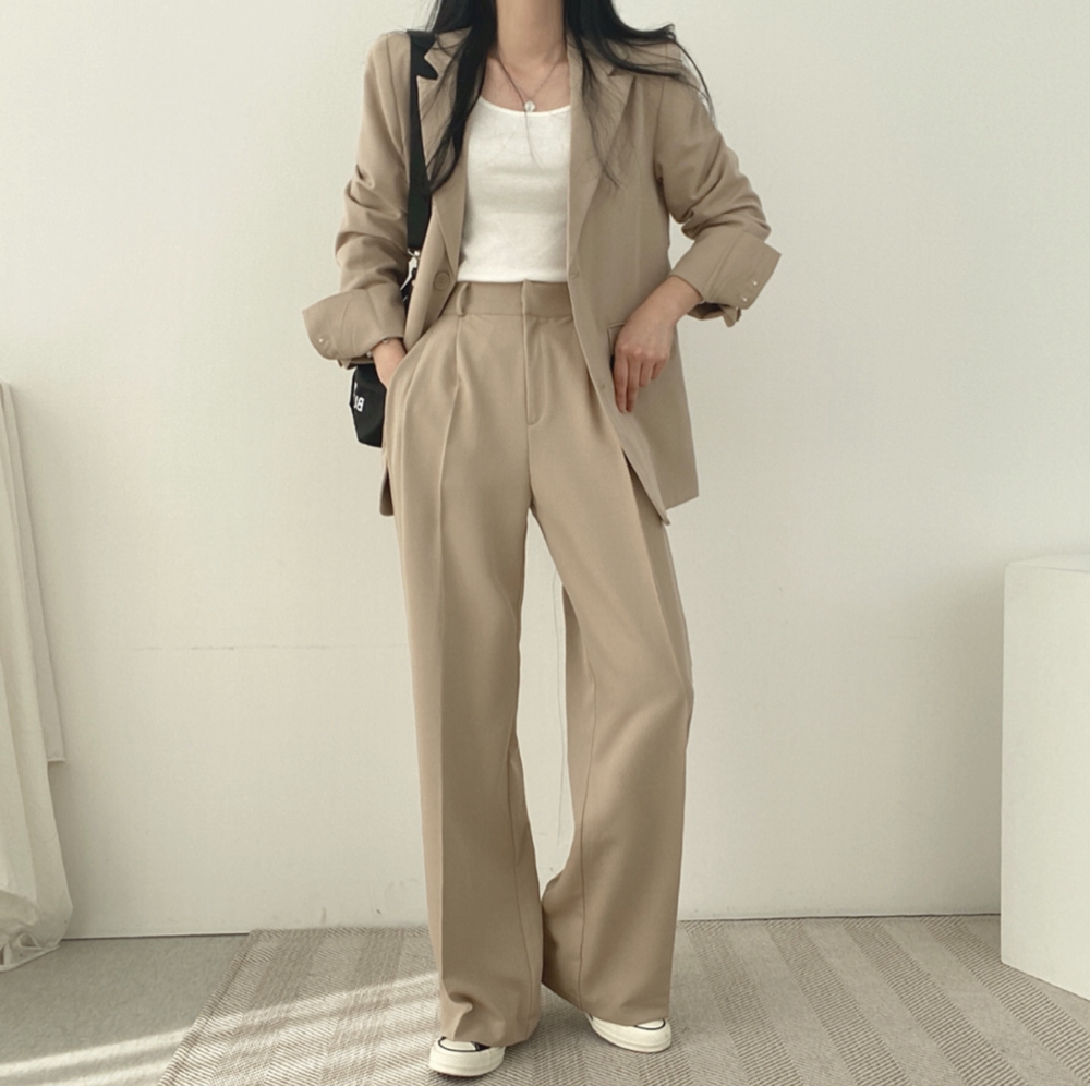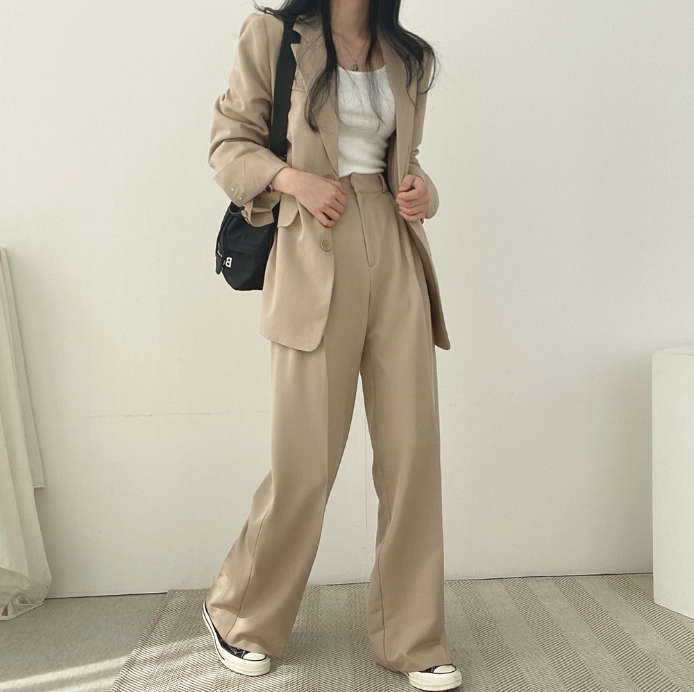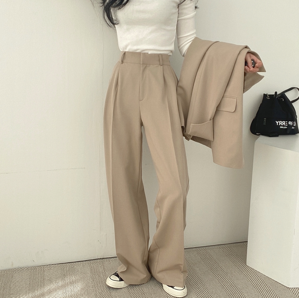 Весенний костюм для отдыха, штаны, в корейском стиле, высокая талия, свободный крой