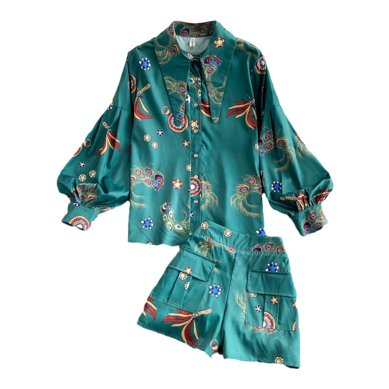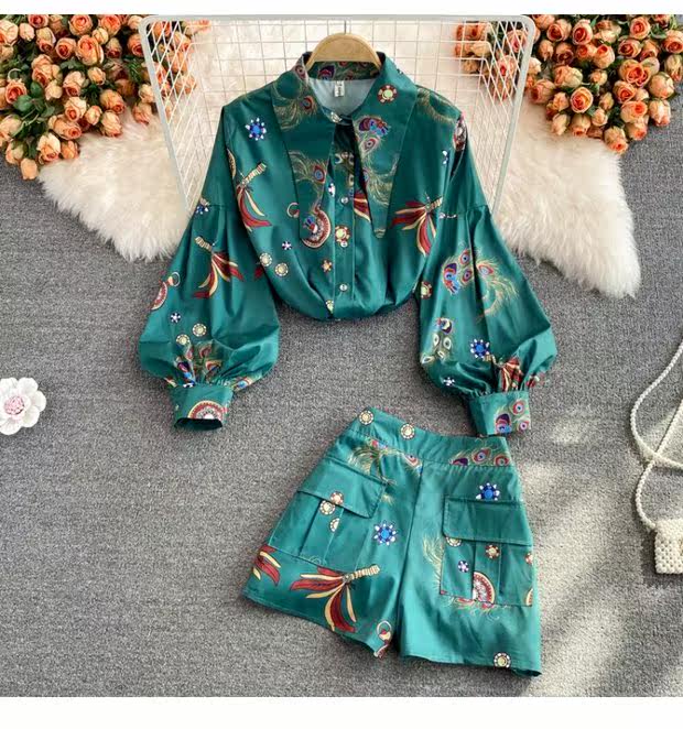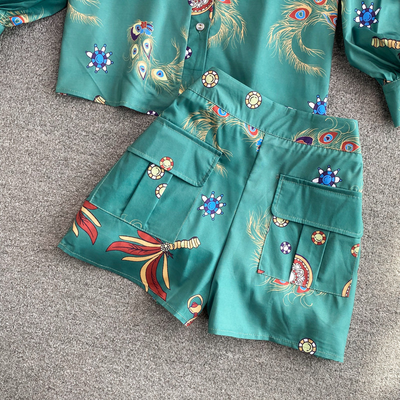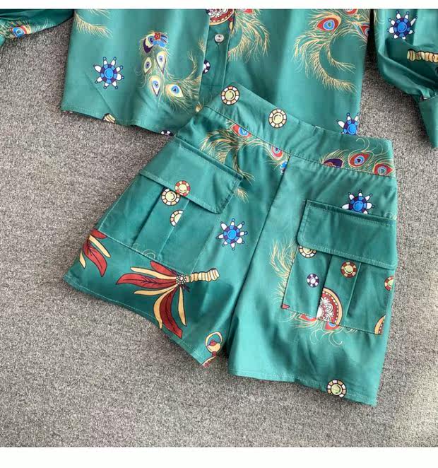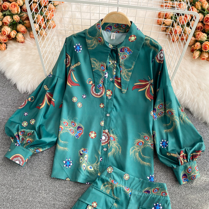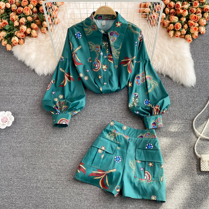 Осенний ретро фонарь, рубашка, комплект, шорты, в западном стиле, высокая талия