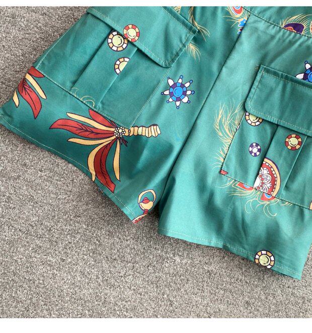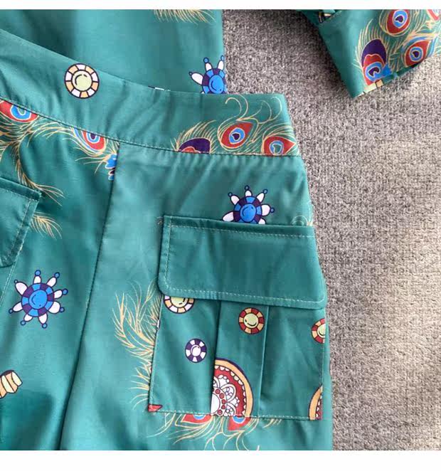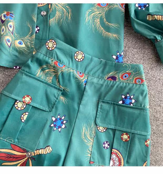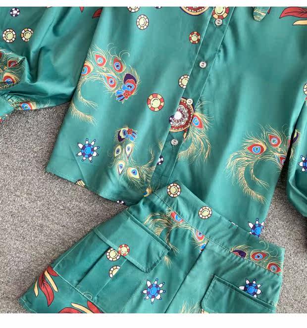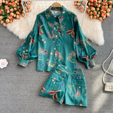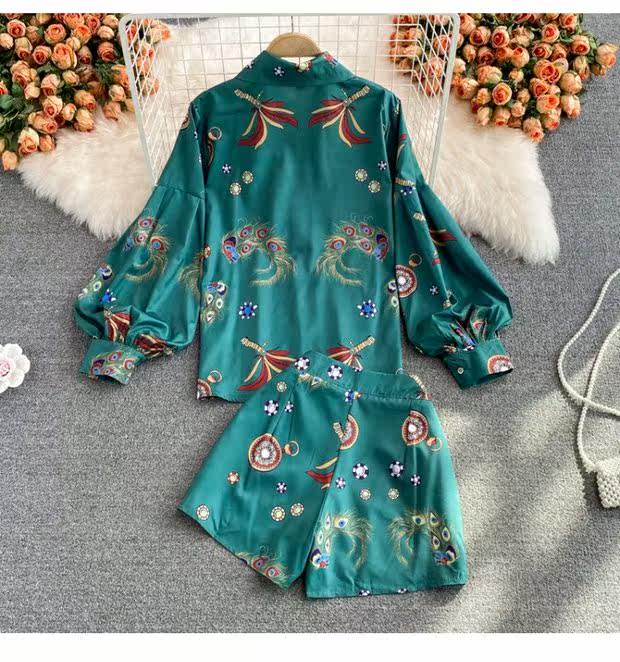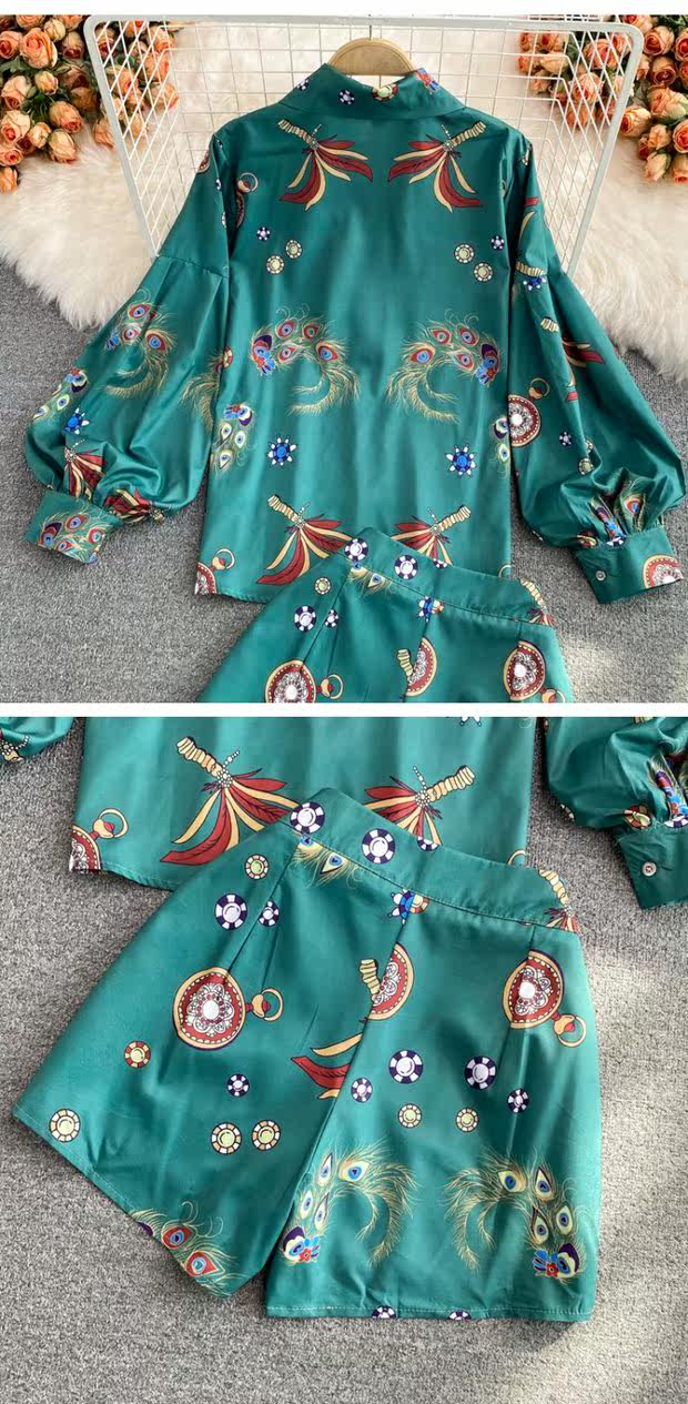 Осенний ретро фонарь, рубашка, комплект, шорты, в западном стиле, высокая талия