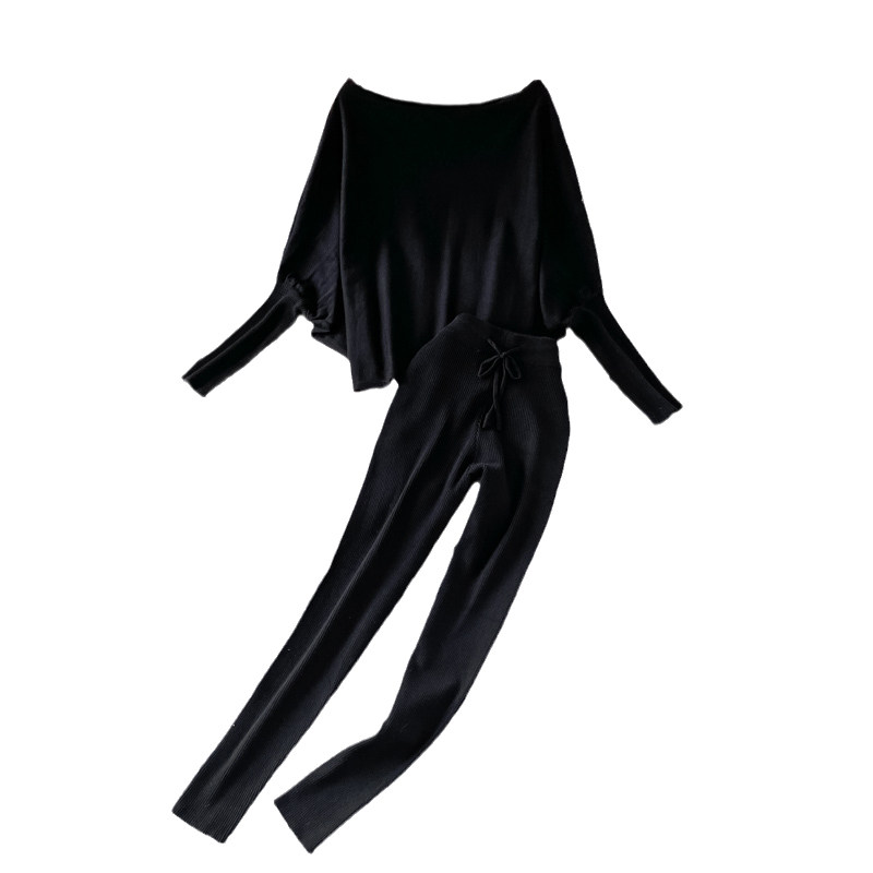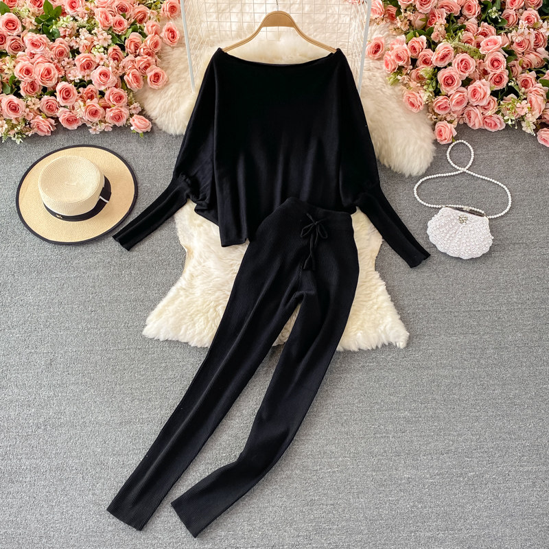 Комплект, трикотажный свитер, штаны, в корейском стиле, открытые плечи, высокая талия
