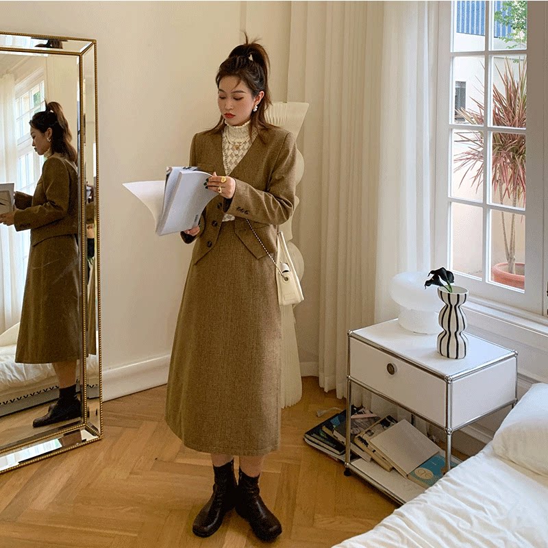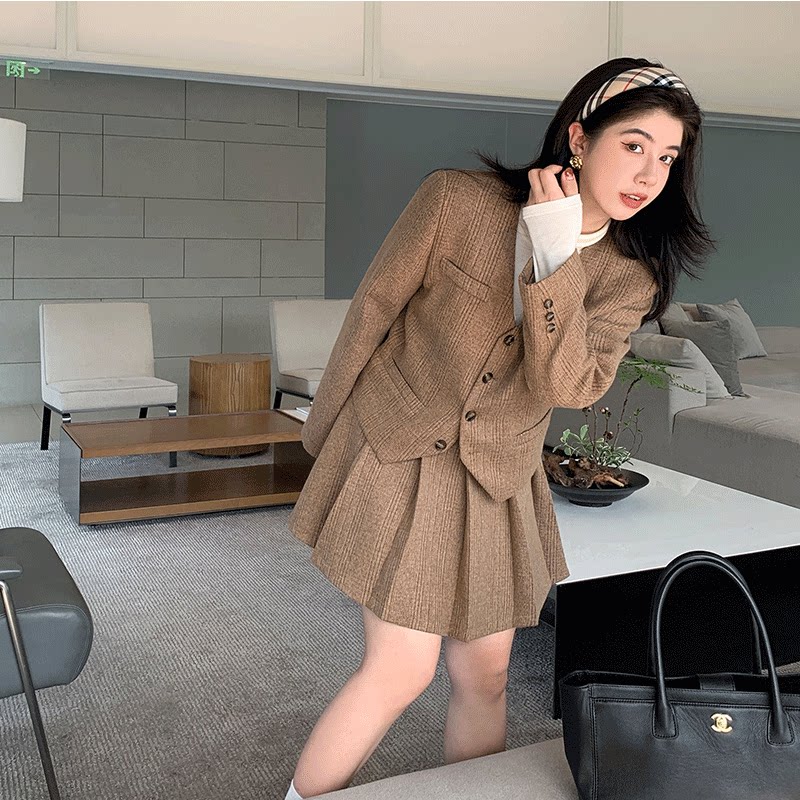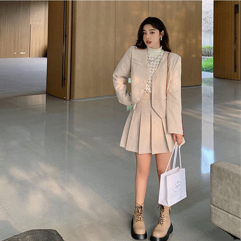 Шерстяной классический костюм, комплект, юбка в складку, большой размер, 3 предмета