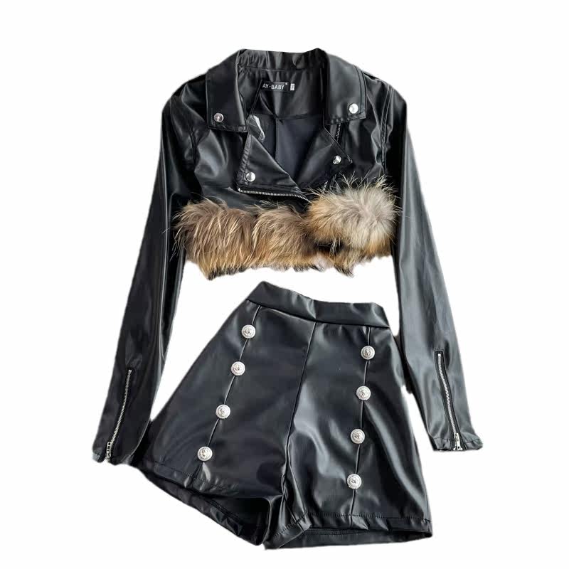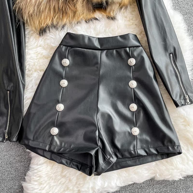 Демисезонная модная короткая полиуретановая куртка, комплект, высокая талия