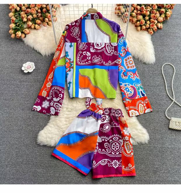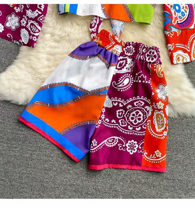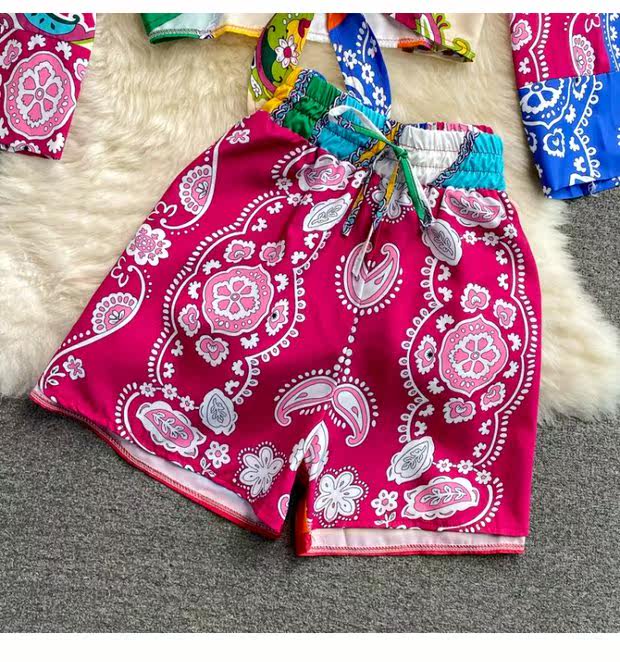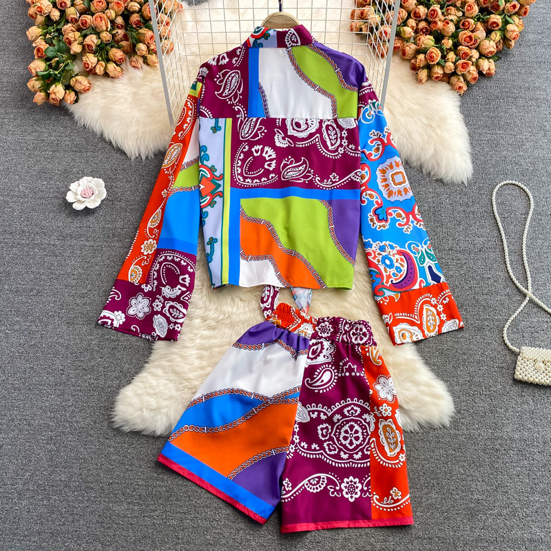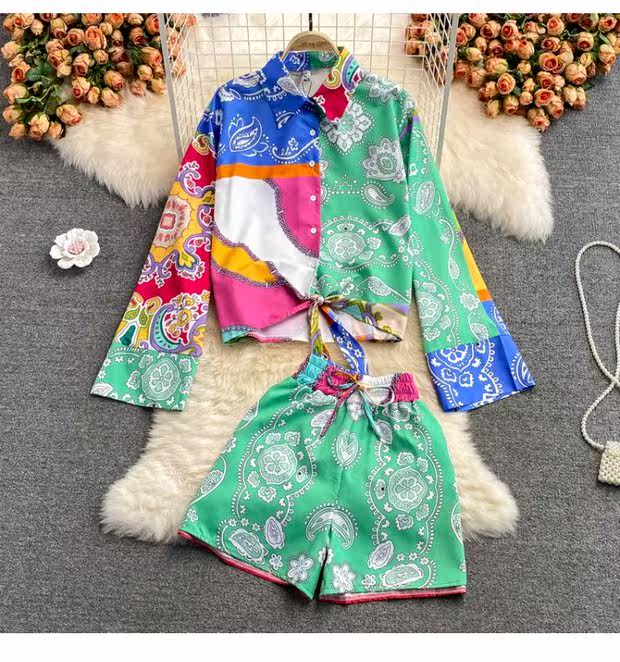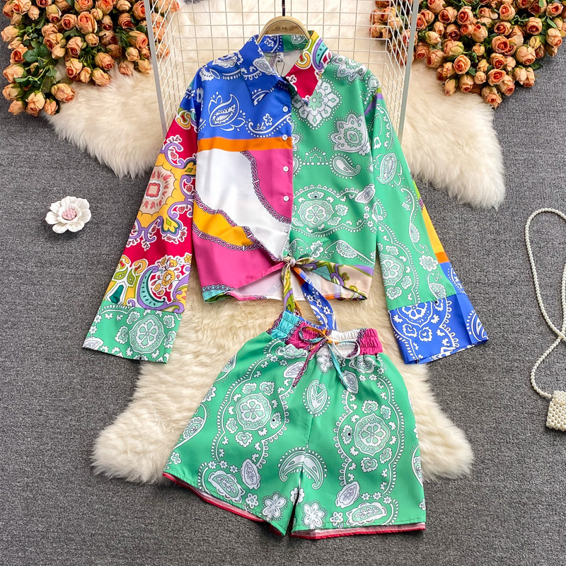 Осенний комплект, корсет, рубашка, шорты, в западном стиле, высокая талия