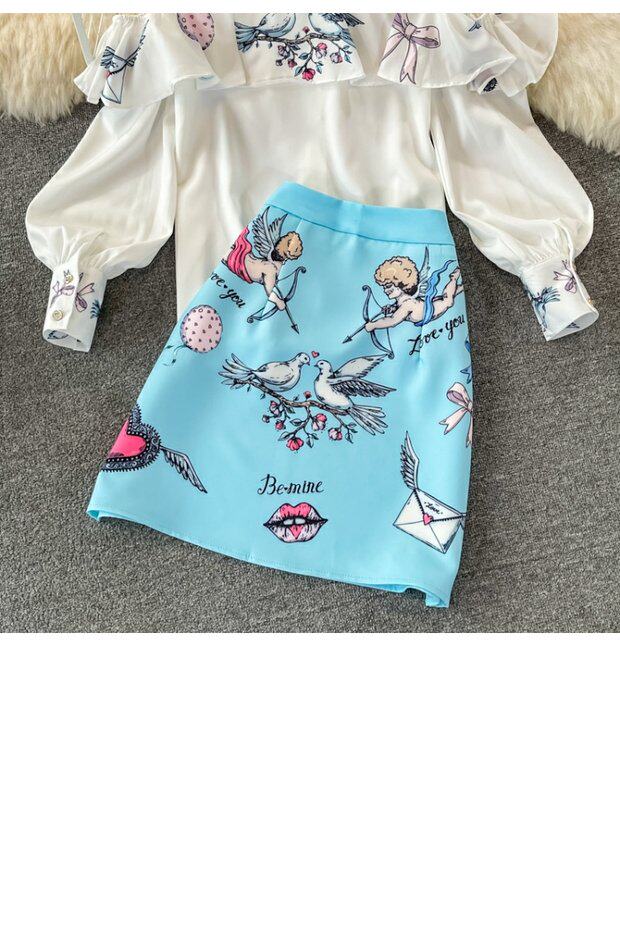 Комплект, классический лонгслив, рубашка, европейский стиль, высокая талия, с акцентом на бедрах