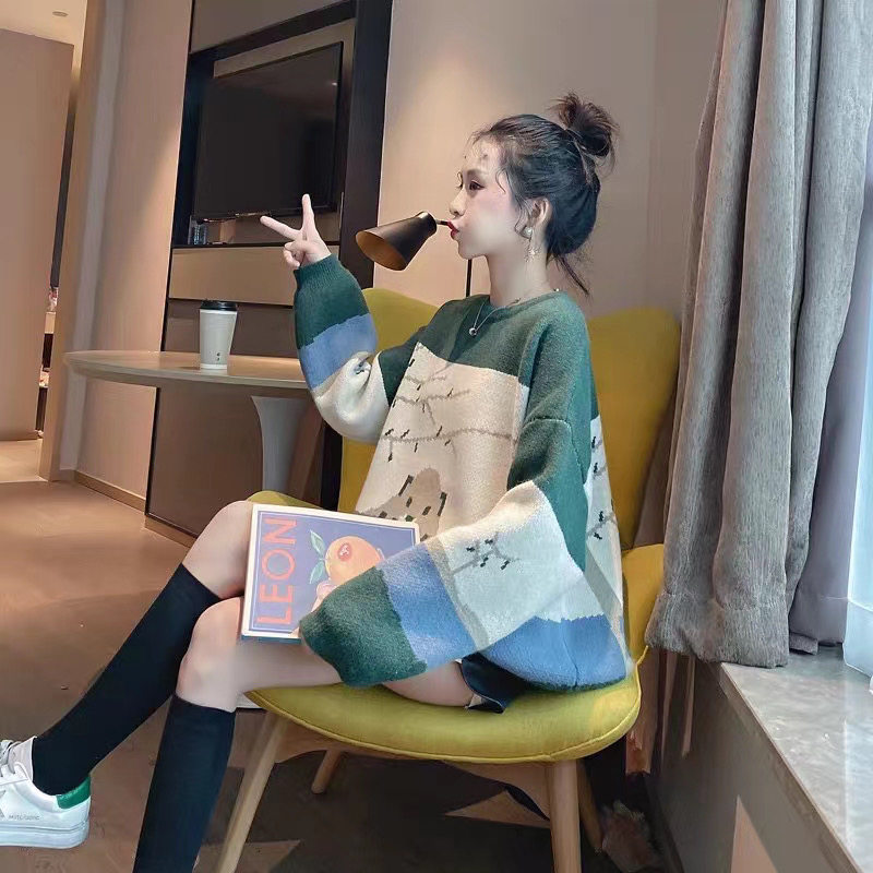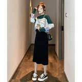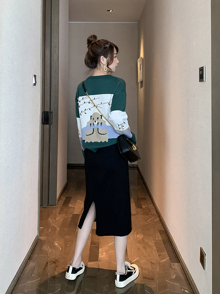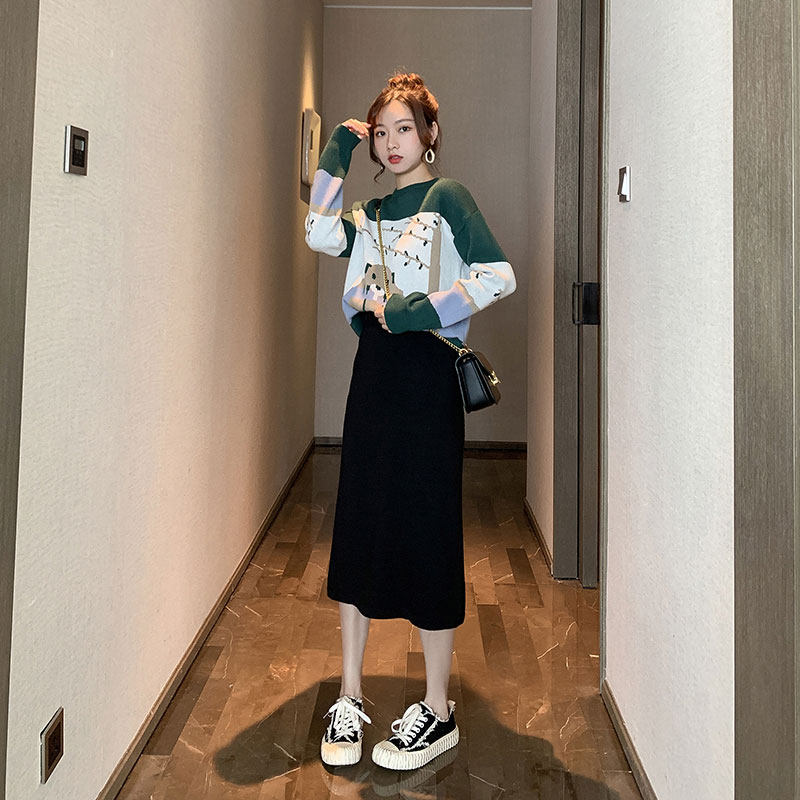 Демисезонный модный трикотажный свитер с круглым воротником, универсальная юбка, комплект, 2021 года