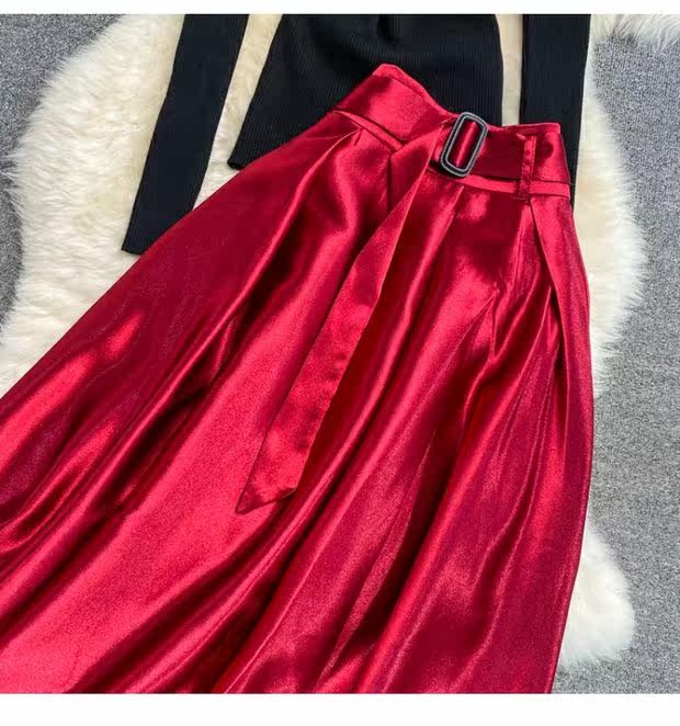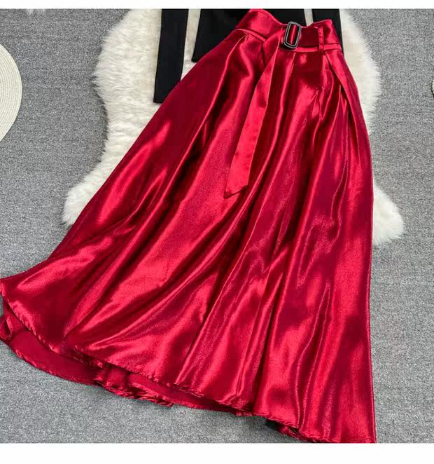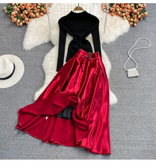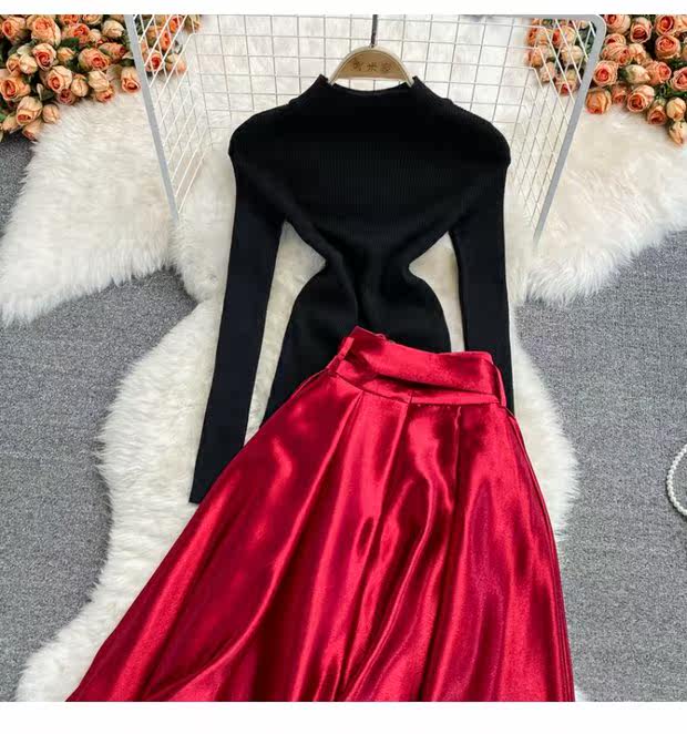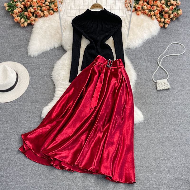Приталенная длинная юбка, трикотажный комплект, средней длины, А-силуэт