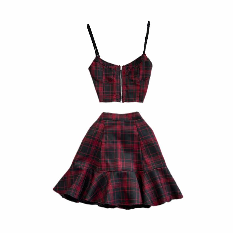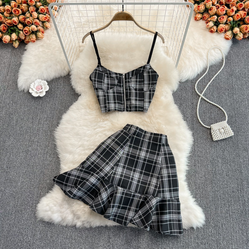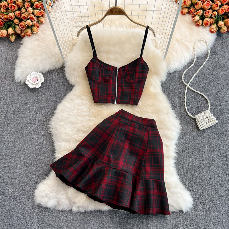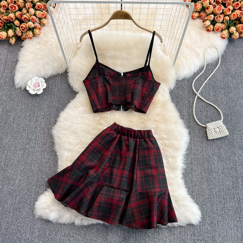 Японская майка, юбка в складку, летний комплект, в британском стиле, высокая талия