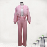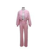 Демисезонная розовая приталенная куртка для отдыха, корсет, модный комплект, 3 предмета