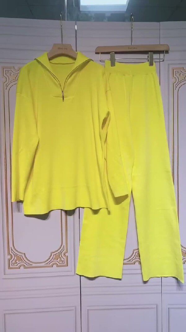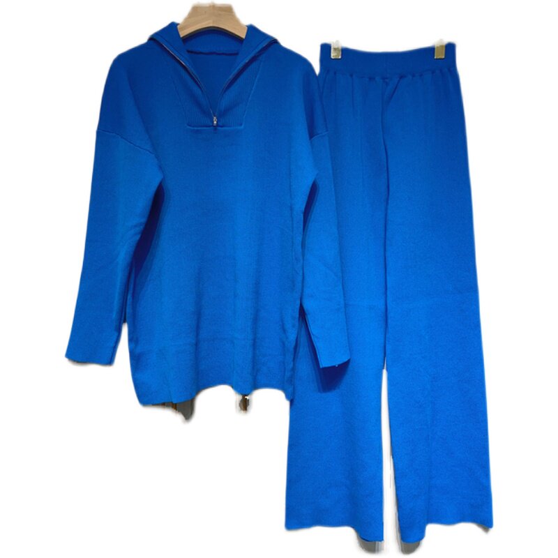 Повседневная осень свободный вязаный свитер. Пуловой и брюки 2 -pie
