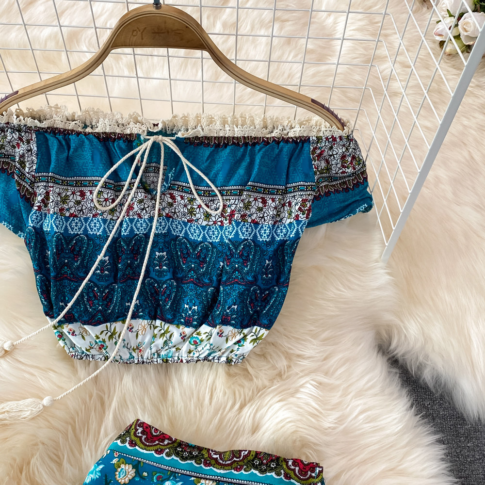 Комплект, короткая приталенная юбка, открытые плечи, высокая талия