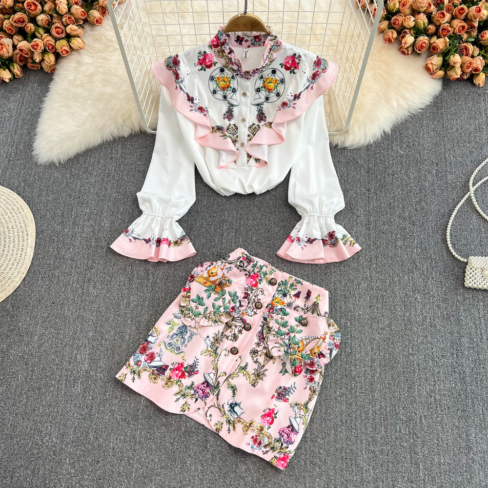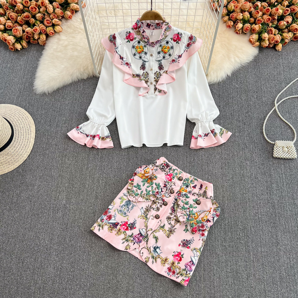 Комплект, мегафон, рубашка, поясная сумка, юбка, европейский стиль, высокая талия