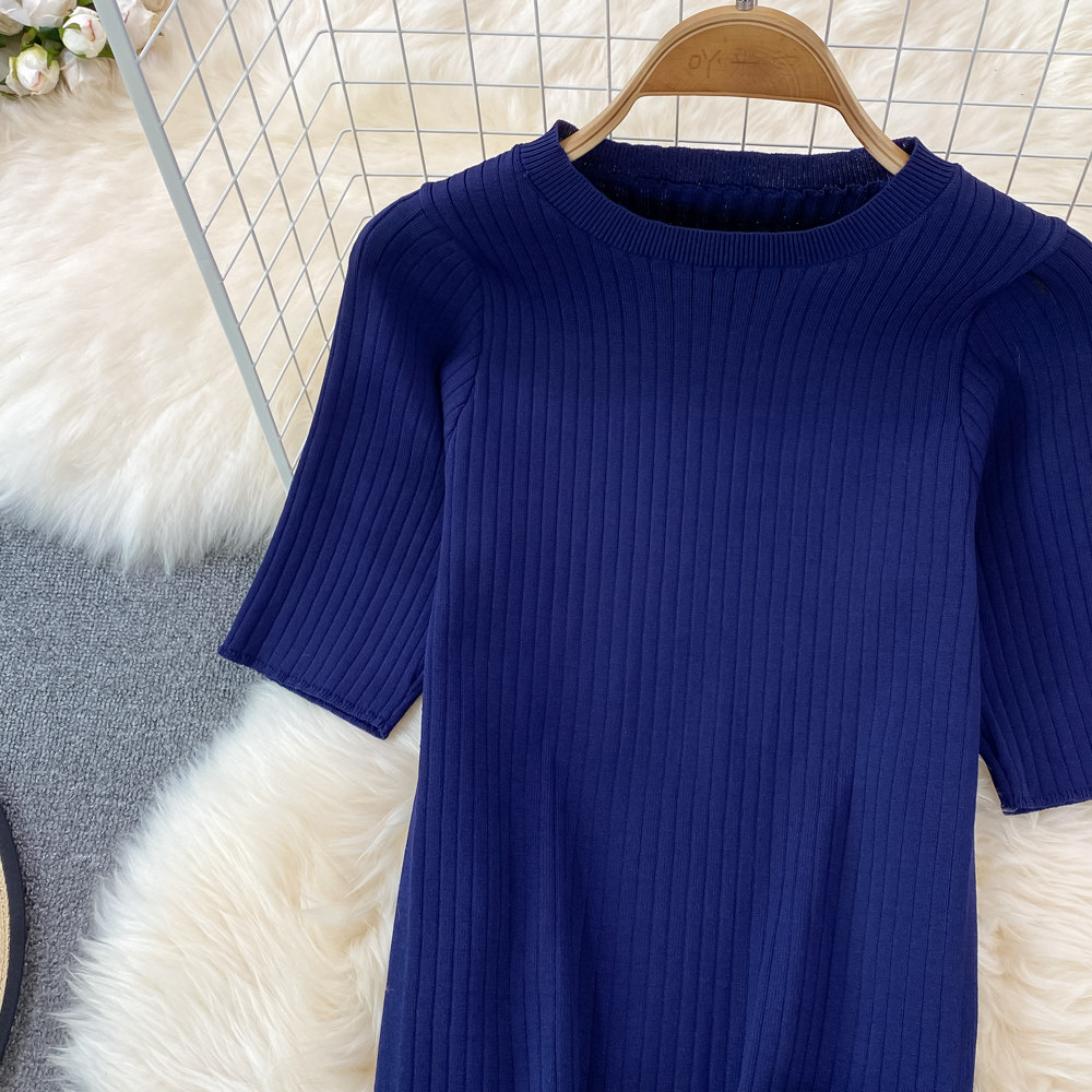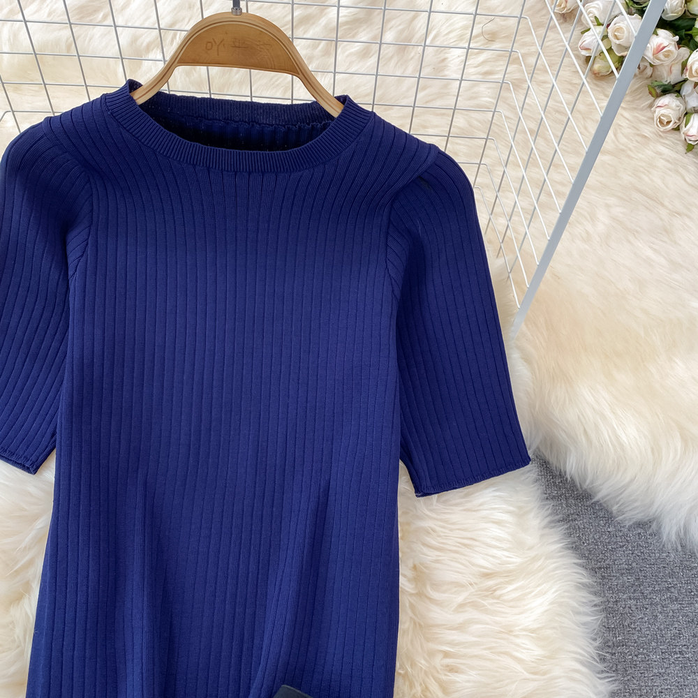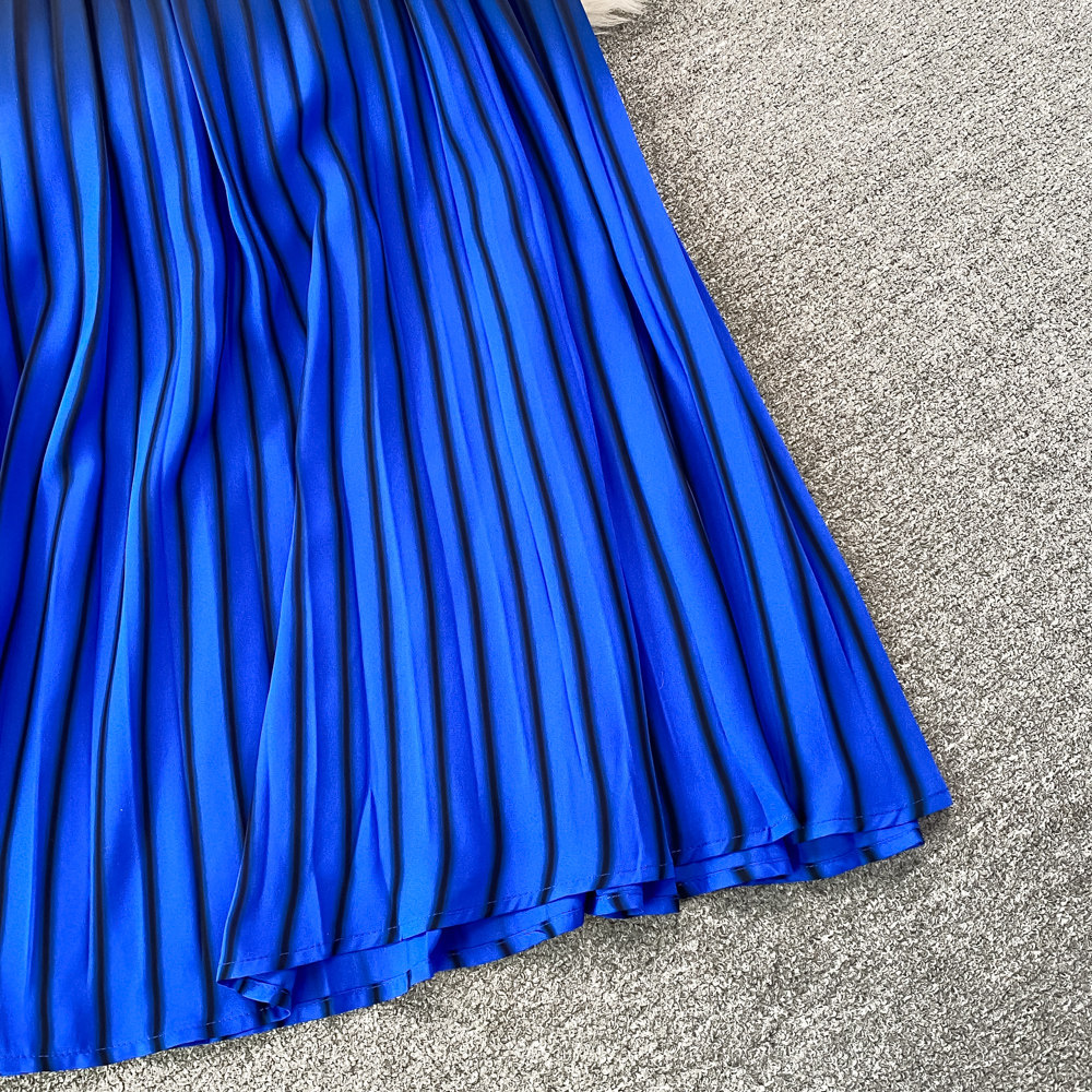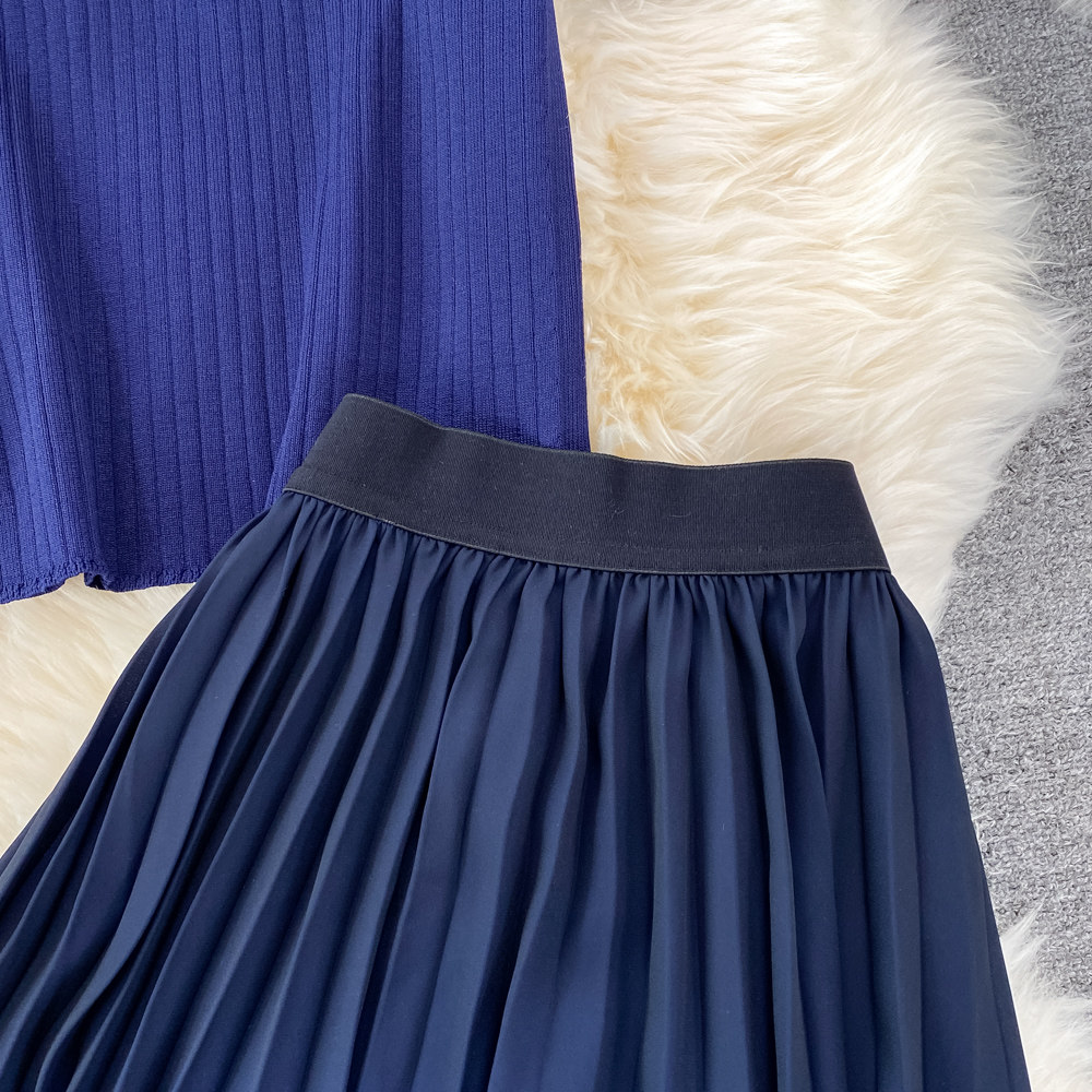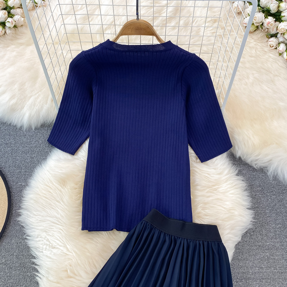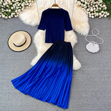 Комплект с круглым воротником, трикотажная короткая юбка в складку, высокая талия, градиент, плиссированная юбка