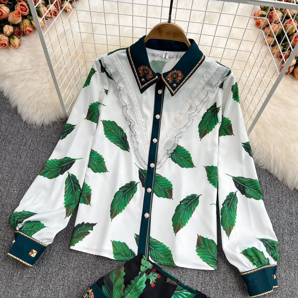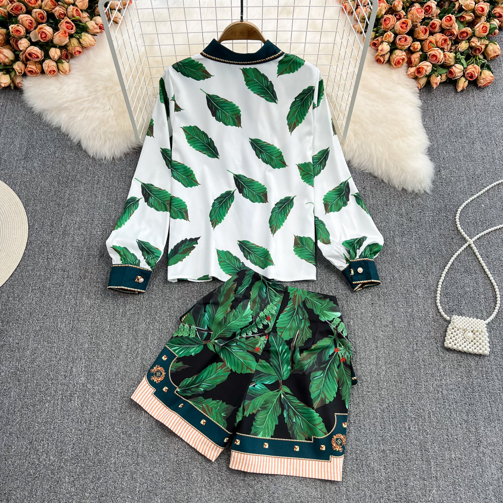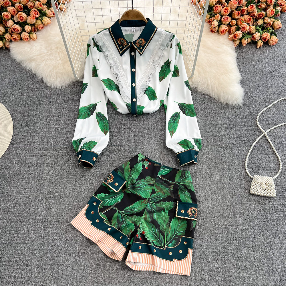 Весенний комплект, кружевная рубашка, шорты, штаны, кружевное платье, высокая талия