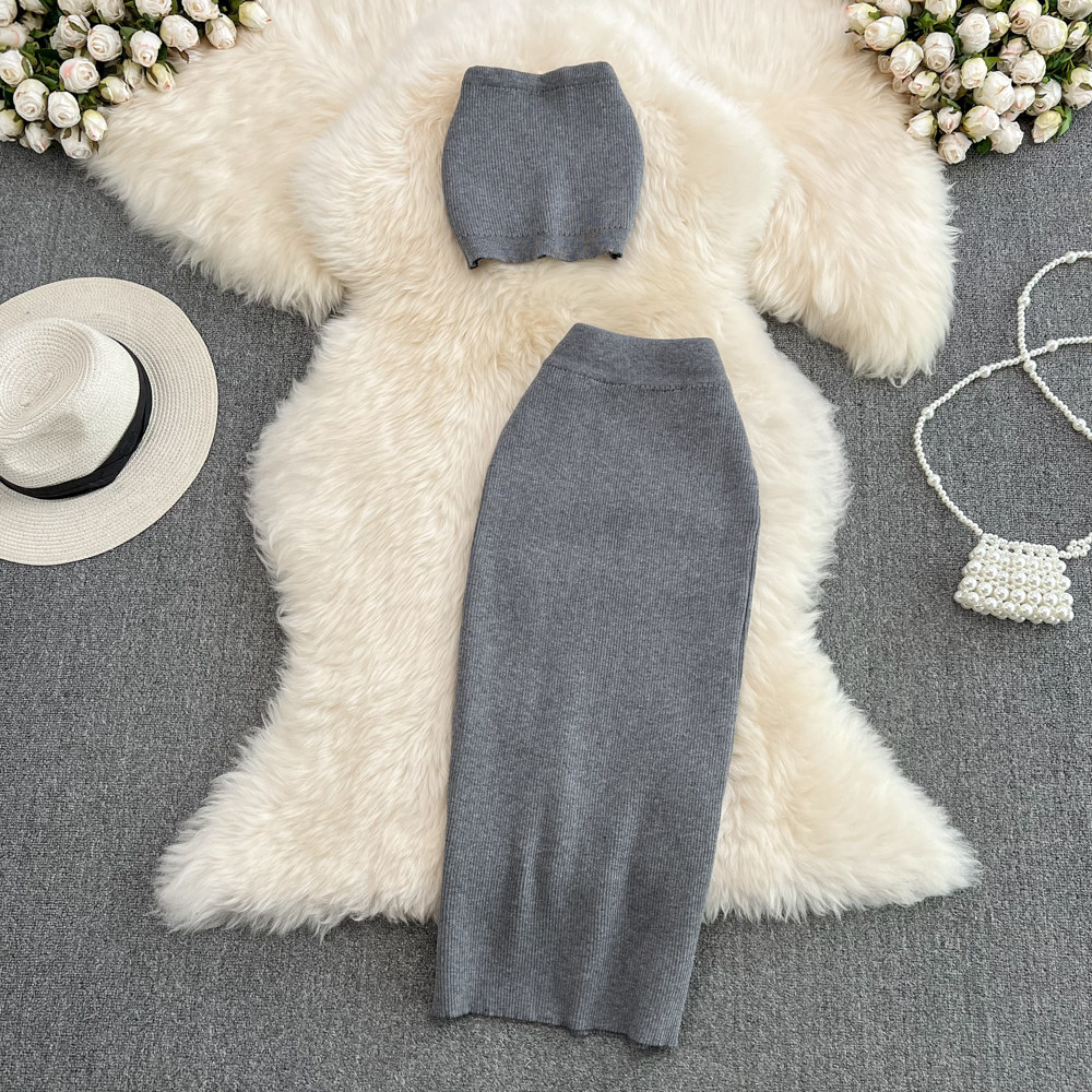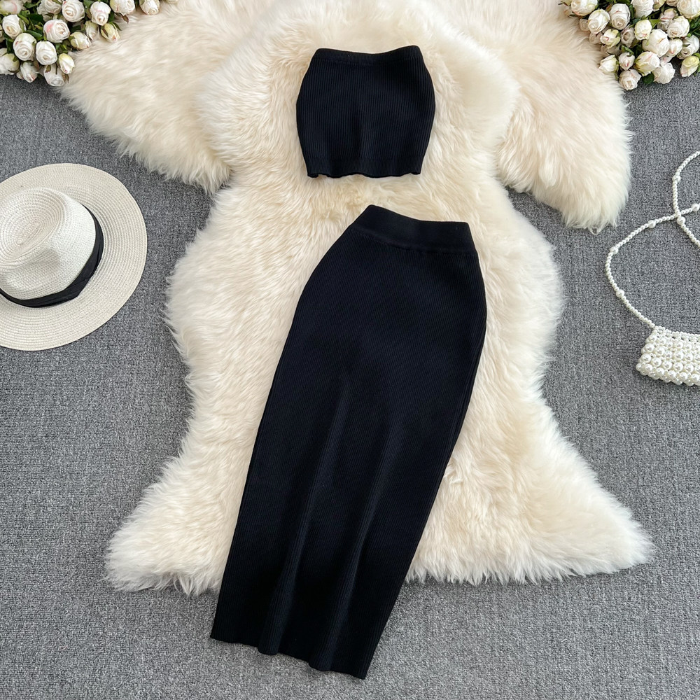 Сексуальный комплект, короткий бюстгальтер-топ, трикотажная юбка, высокая талия