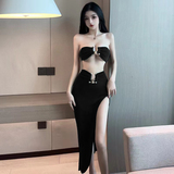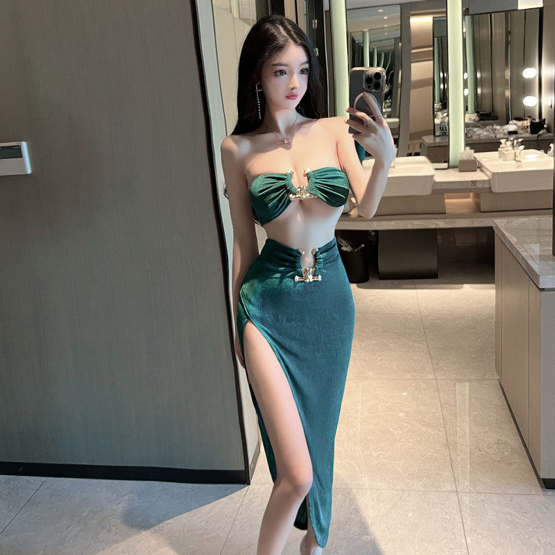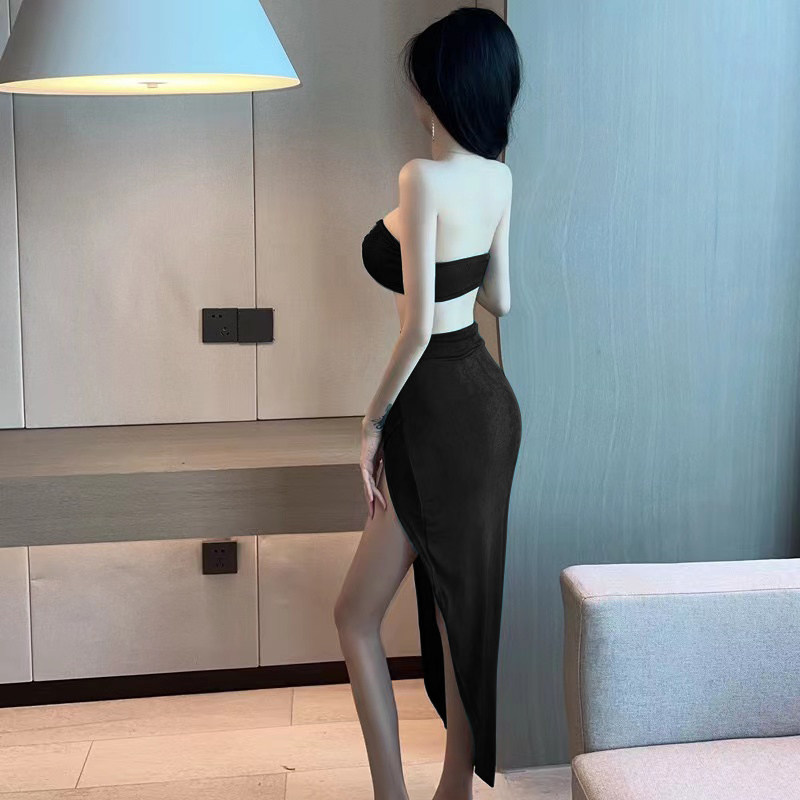 Сексуальный топ без лямок, юбка, комплект, в западном стиле, высокая талия, с акцентом на бедрах