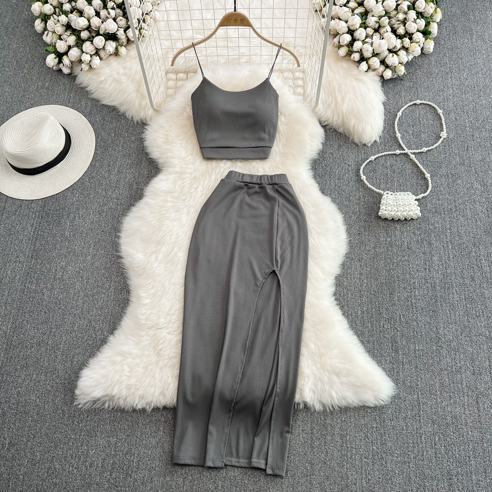 Комплект, длинная майка топ, юбка, облегающий крой, с открытой спиной, высокая талия, с акцентом на бедрах